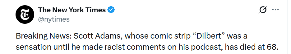 And the folks from whom you’re getting the opinion that Scott Adams was an outlier racist: