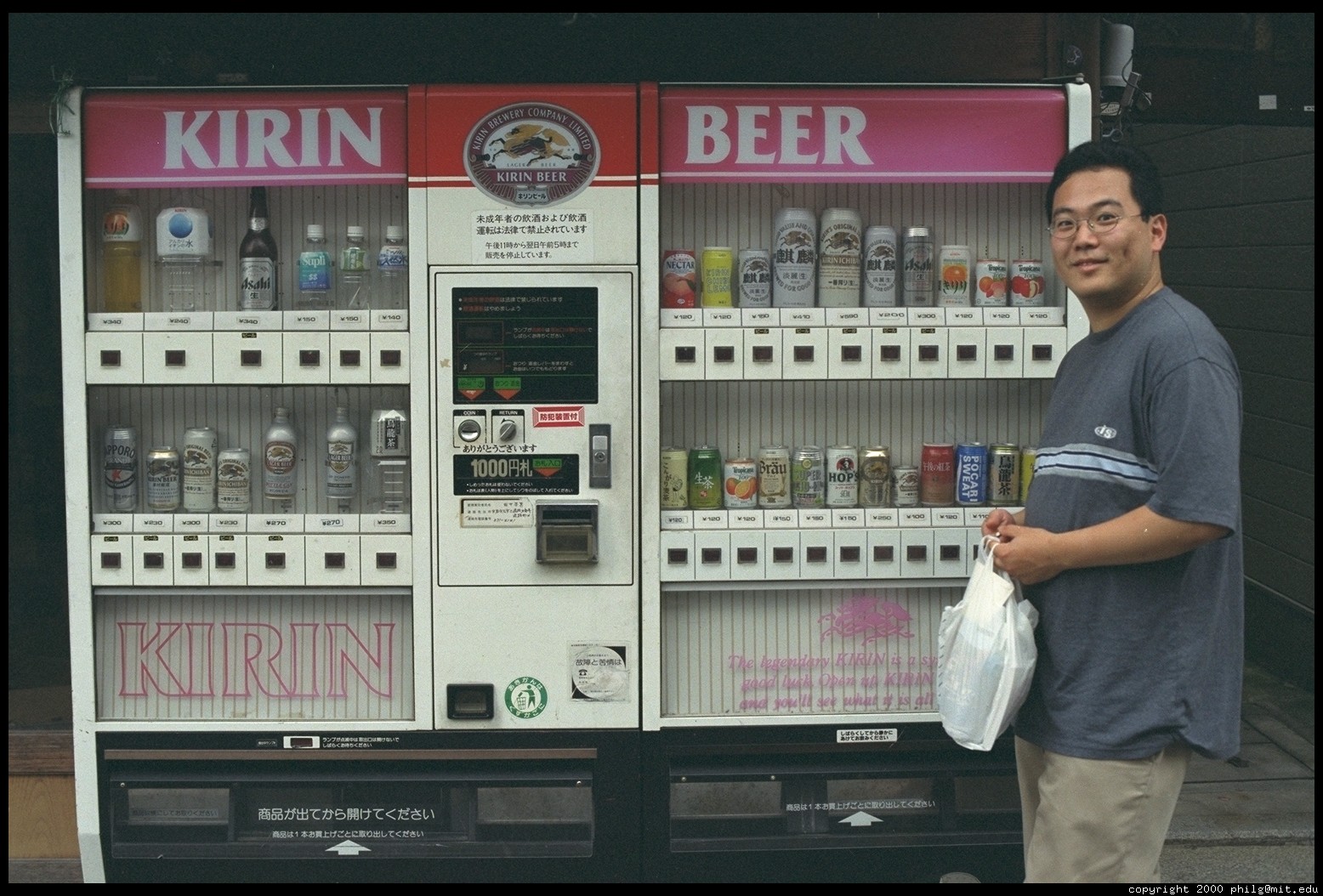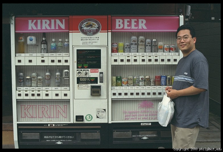 Beer vending machine (and happy customer: Jin). Arashiyama. Kyoto