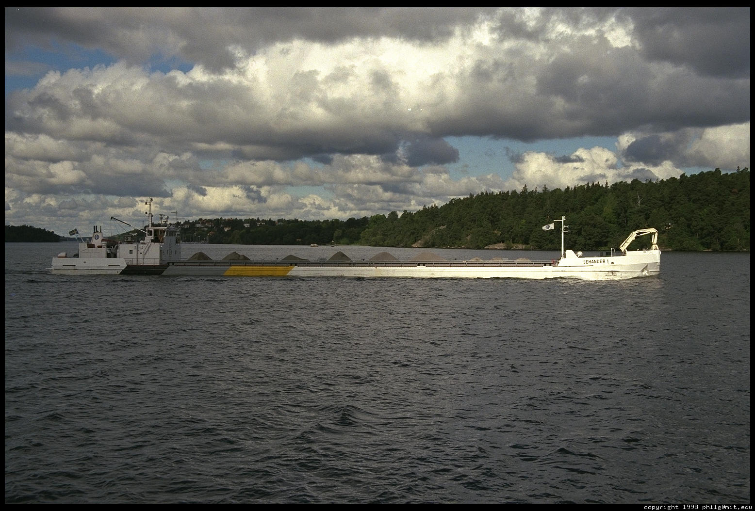 A barge, view from the steamboat Prins Carl Philip outside Stockholm