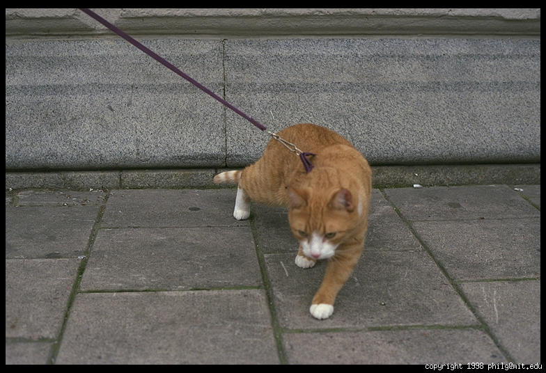 Cat being walked in Stockholm
