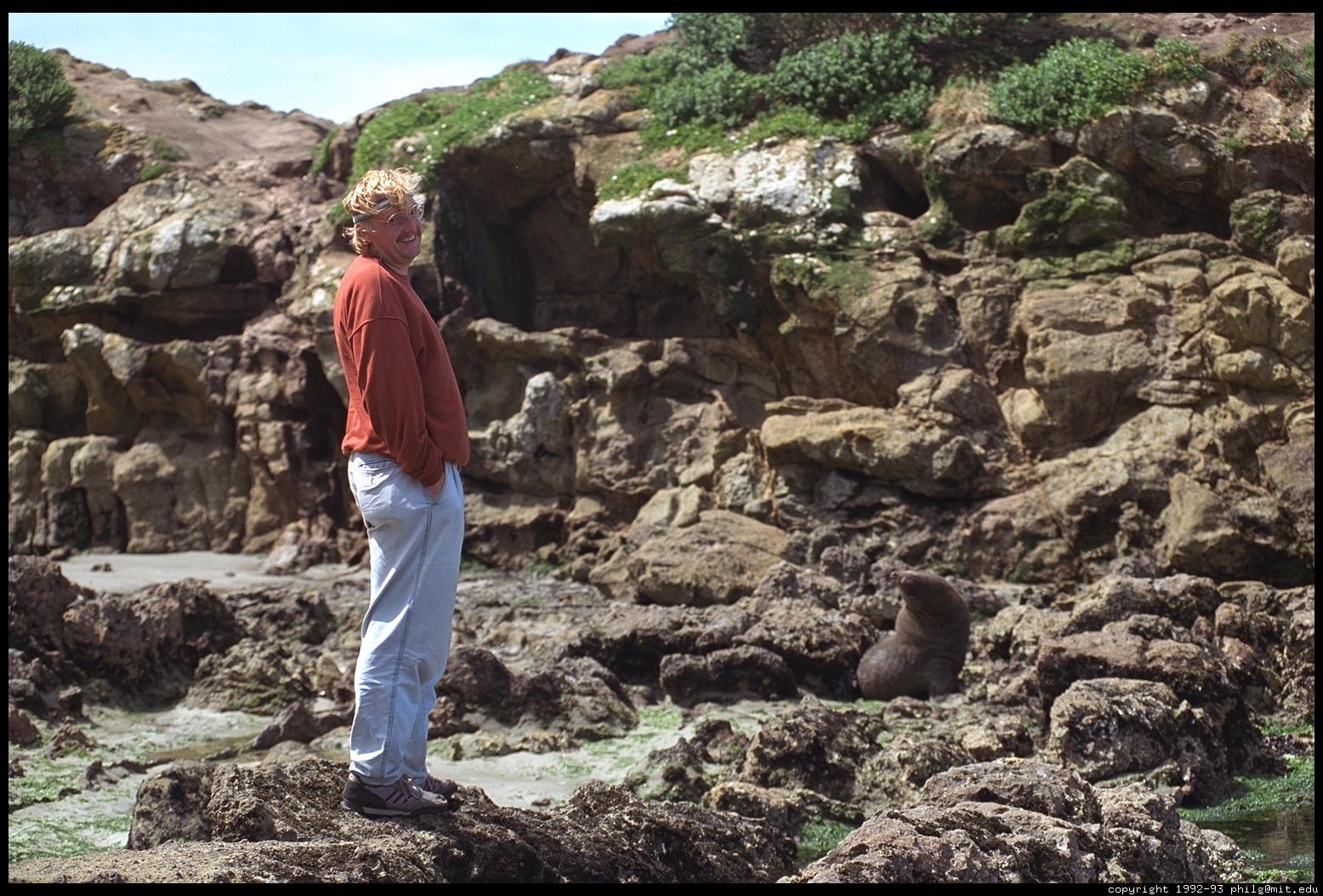 Klaus with the seals. Otago Peninsula. South Island, New Zealand.