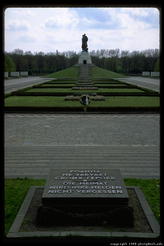 Translation: "The Motherland will not forget her heroes" (thanks to Mike Tarley, tarley_mike@tandem.com, for translating the Russian/German pedestal)