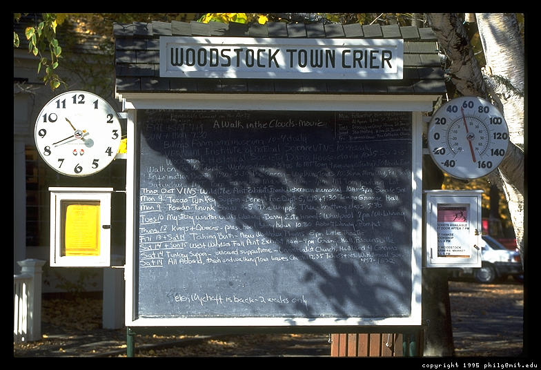 Bulletin board in downtown Woodstock, Vermont
