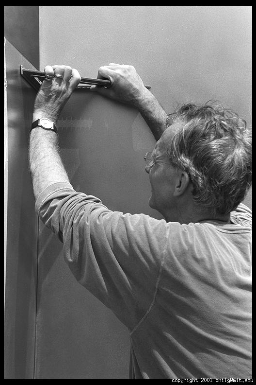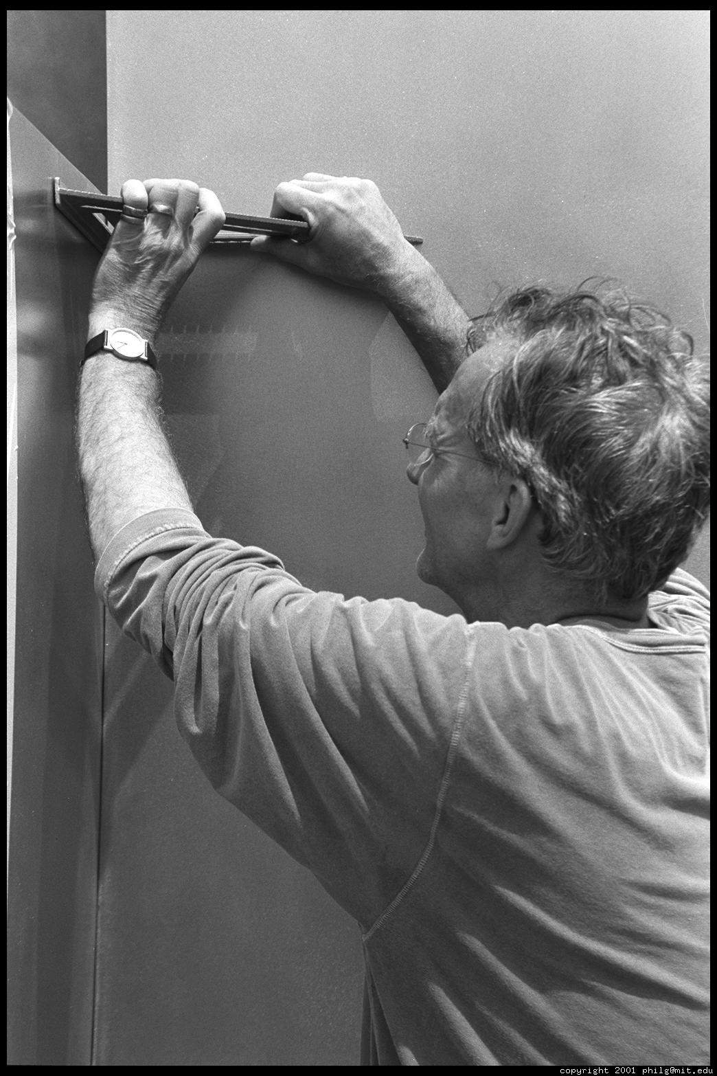 Installation of an Escaping Flatland sculpture by Edward Tufte. Cheshire, Connecticut