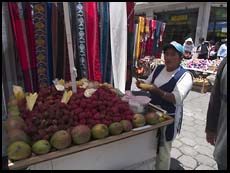 In the Andean highlands you can photograph a civilization built on the slopes of granite mountains where people can look up 3000' from their frontyards to the snow-capped peaks and from their backyards look down 3000'into a canyon. The traditions and some of the stone buildings go back thousands of years. On the eastern side of the Andes you will find the authentic Amazon basin where Indian guides show you diverse but elusive wildlife that will give your 600/4 lens with teleconverter a good workout. In the colonial cities you'll find 400-year-old Spanish architecture and streets. In the Galapagos you'll take animal portraits with a 50mm lens.