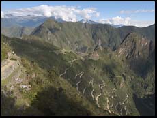 Access is via a short flight to Cusco, a brutal 11,000' above sea level, then a train ride through the Urubamba Valley (9,000' above sea level) for about four hours until you reach the town of Aguas Calientes, only 6500' above sea level. You might be tempted to rest for a few days in Cusco before proceeding to Machu Picchu but if you have started in Lima it is much better to rush as quickly as possible to the lower elevations of Machu Picchu and then come back up towards Cusco as you acclimate.