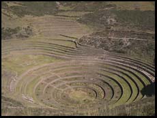 concentric circular terraces built into a depression where the Incas
