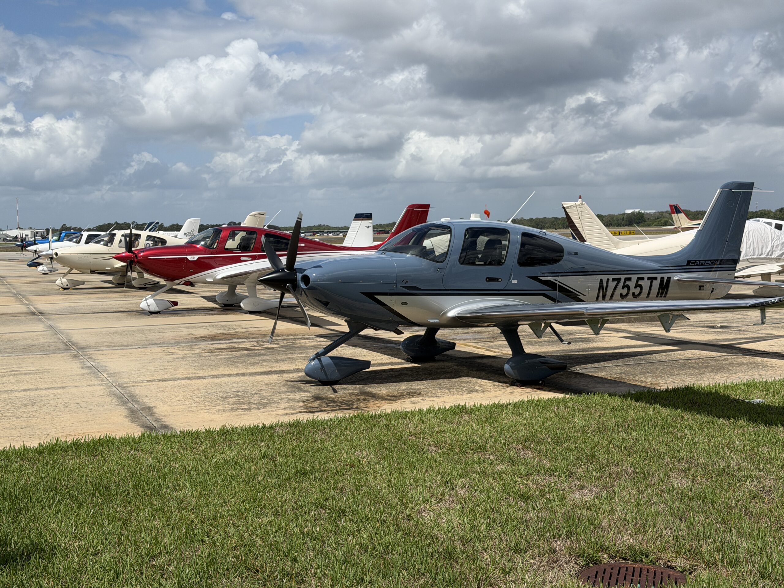 My journey began with a flight (2005 Cirrus SR20 with no A/C) from our South Florida redoubt to KTIX. The sole FBO was slammed so they established a piston ghetto parking area on the east side of the field and deputized flight school employees to park the planes that weren’t worth dealing with. Here’s the Cirrus row: