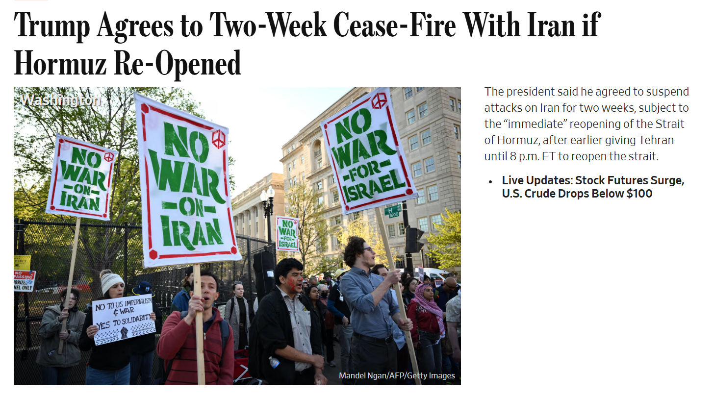 How does the U.S. benefit from a two-week ceasefire in the war against Iran? I’m sure that some of our pilots could use a rest, but otherwise isn’t the main beneficiary our adversary? Iran’s oil industry wasn’t damaged so the regime can keep loading up tankers with crude and shipping it out to customers via the Strait of Hormuz. Thus, the Islamic Republic’s stockpile of cash will soon be back where it was. Iran can dig any buried missiles out of damaged buildings and bunkers and set them up on launchers ready to go on April 21. Iran should be able to get many of its weapons factories back into production as well since the U.S. didn’t damage Iran’s electric power grid or generating stations. Every Islamic Republic military officer or political leader who was busy running from bunker to bunker and fearful that a traitor would rat out his GPS coordinates to Israel or the U.S. can go home, shower, and relax.