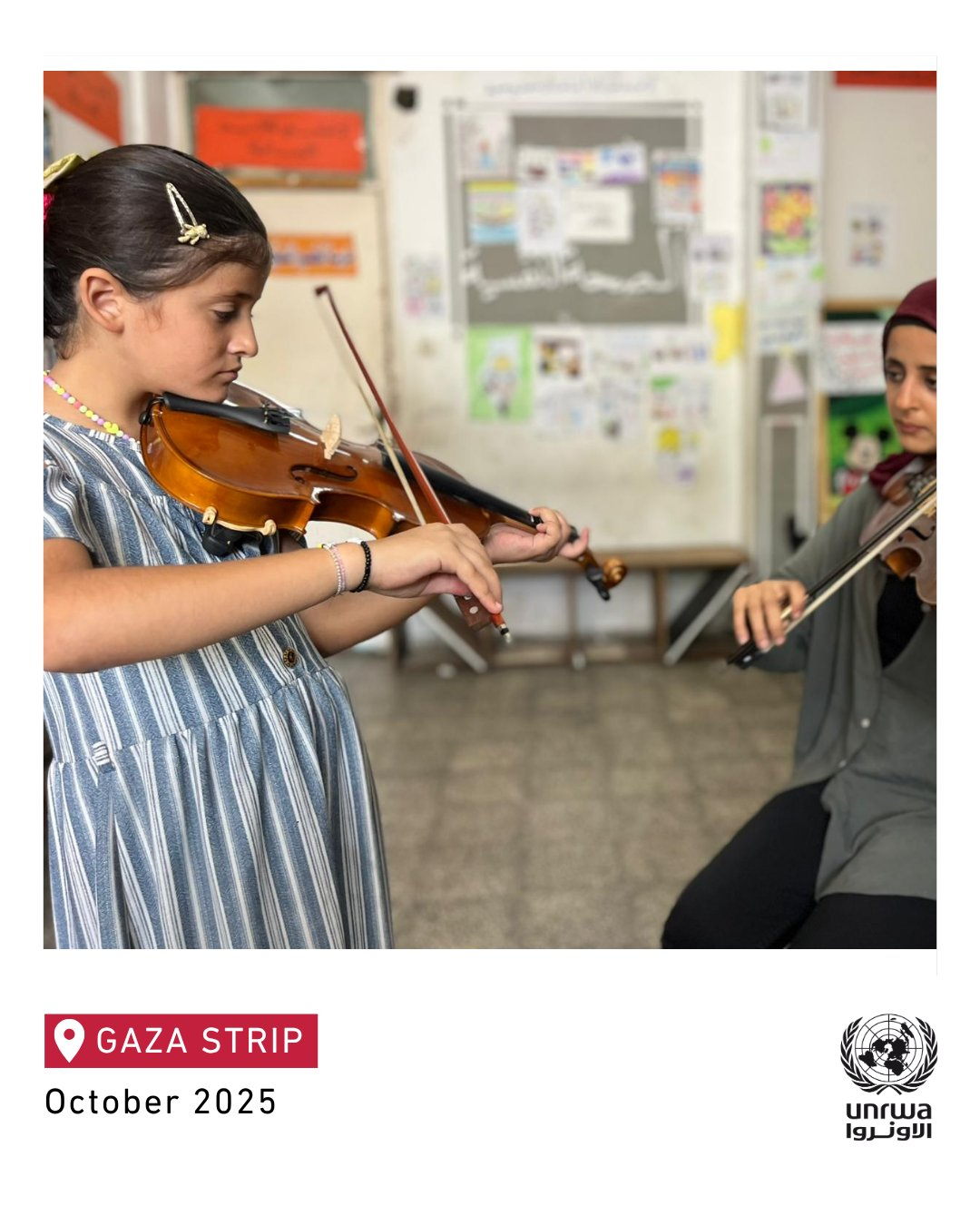 They’re playing their violins, undamaged after what we’re told has been “carpet bombing”, and sitting/standing within an apparently undamaged school, after what we’re told has been specific targeting of schools (UN) by tanks, artillery, and 500 lb. bombs: