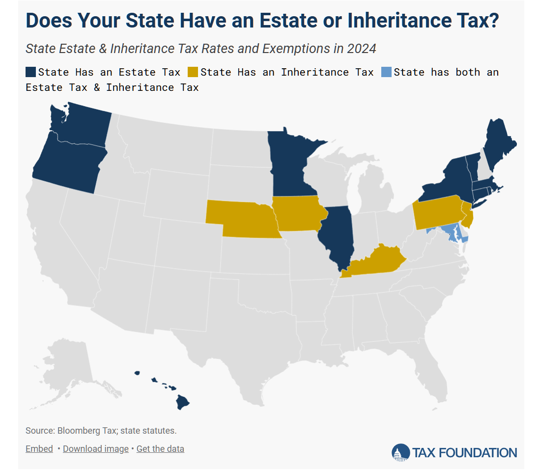 Happy National Estate Planning Awareness Week to those who celebrate. Remember that the first advice from any attorney to a client in Massachusetts or New York is “move out of Massachusetts [or New York] to a state that doesn’t have an estate tax”. Here’s a map from the Tax Foundation (people with money should move from the colored-in states to the grayed-out states, especially to those grayed-out states that also have no income tax, e.g., New Hampshire, Florida, Tennessee, Texas, etc.):