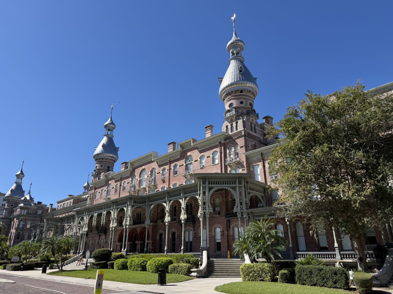 One of Florida’s great 19th century hotels, the Tampa Bay Hotel (1891; 511 rooms for $3 million), fell on hard times during the Great Depression and was converted to use by what today is the University of Tampa, a private 11,000-student school. A portion of the structure is preserved as the Henry B. Plant Museum, named for the railroad tycoon who built the hotel.