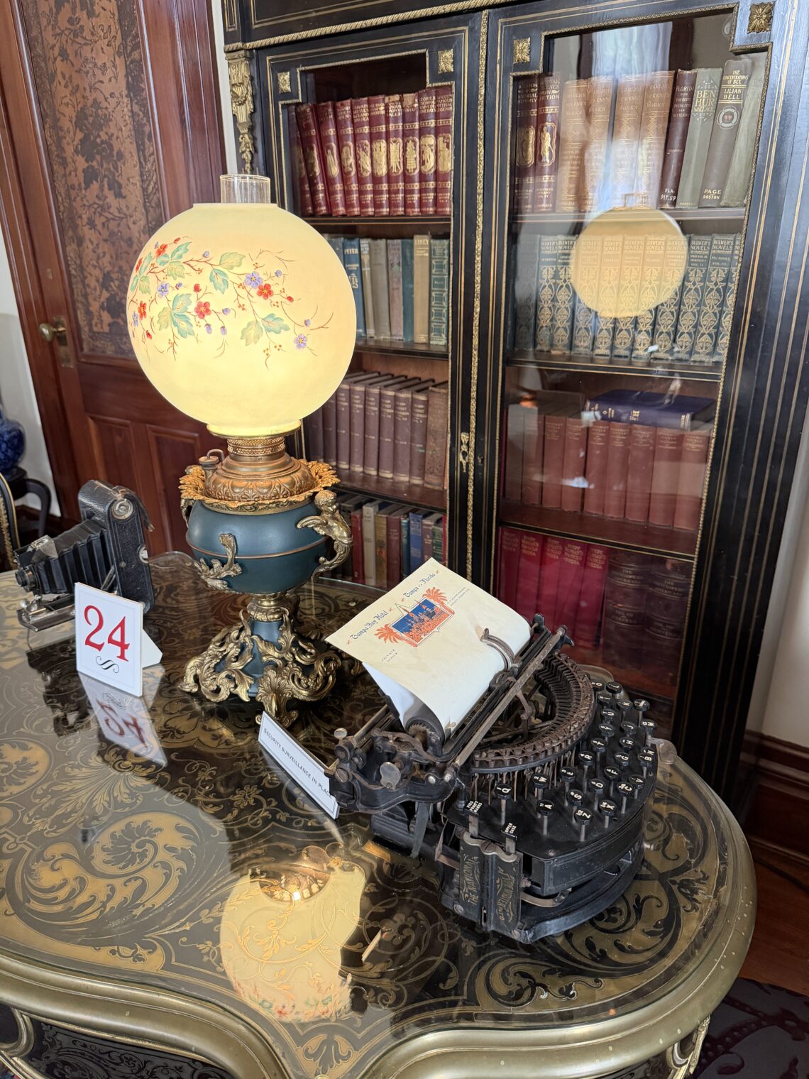 Instead of elbowing their way off Spirit, the elite guests of the hotel would step out of their private railcars just a few feet from the front door of the hotel. The original front entrance dog sculpture has been preserved and also the museum shows an early word processor:
