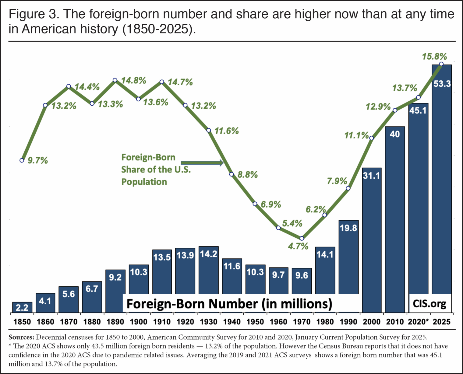 We’re informed that low-skill migrants make America rich. America has never been richer in migrants (CIS):