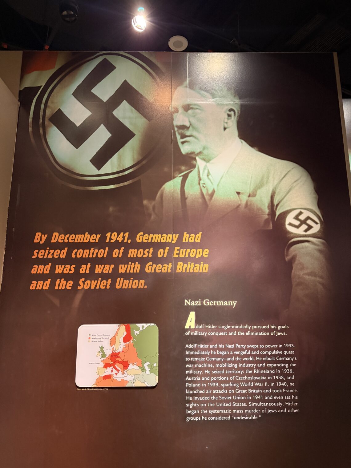 The World War II exhibit reminds visitors that the U.S. and U.K. defeated Germany without significant assistance from the Soviet Union.