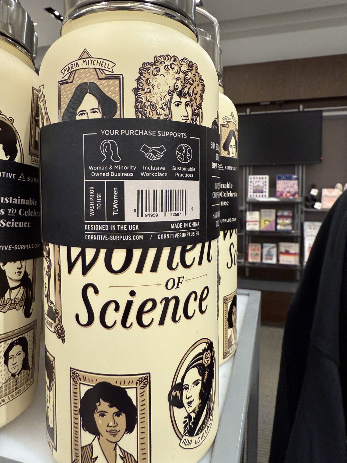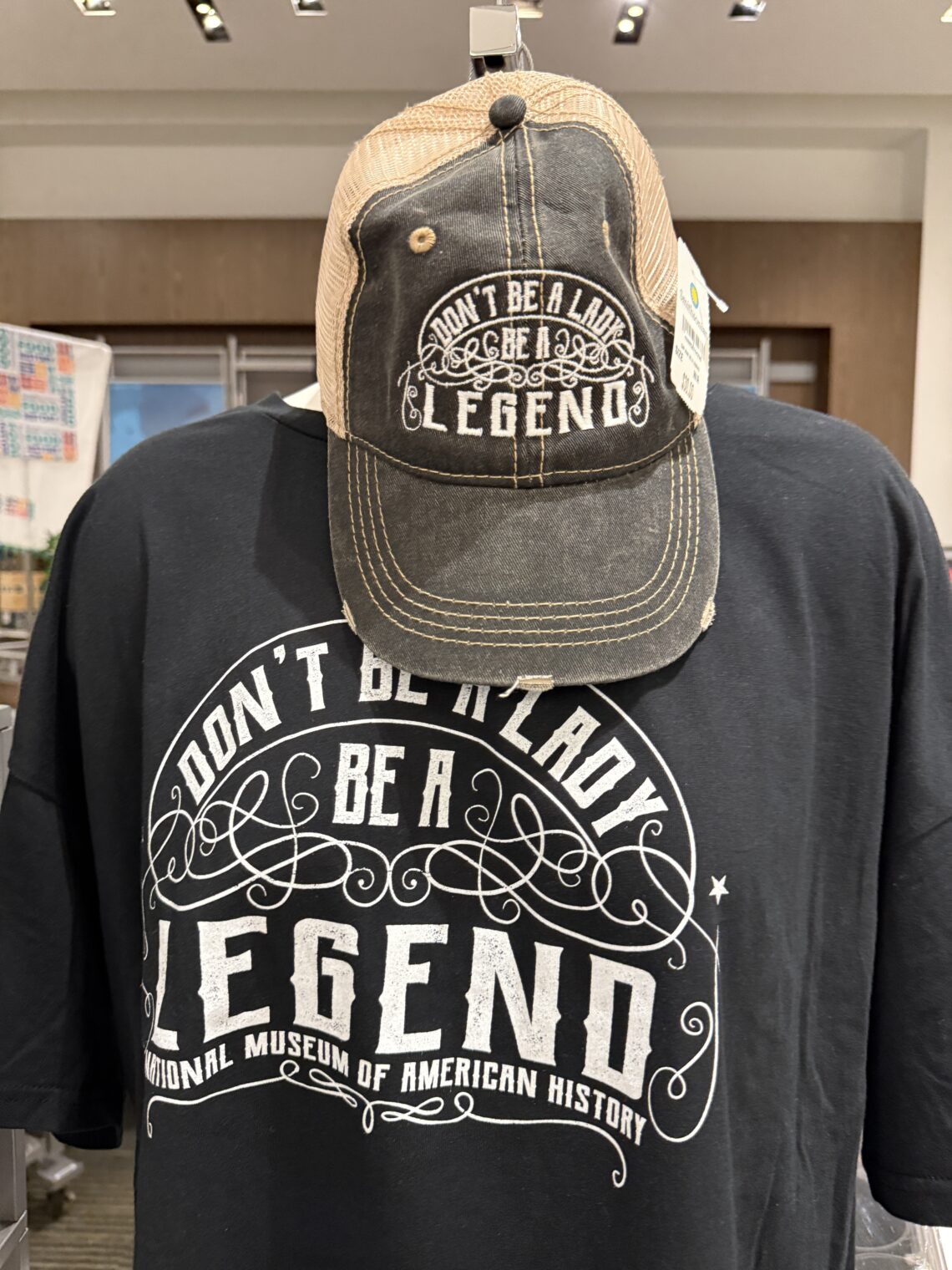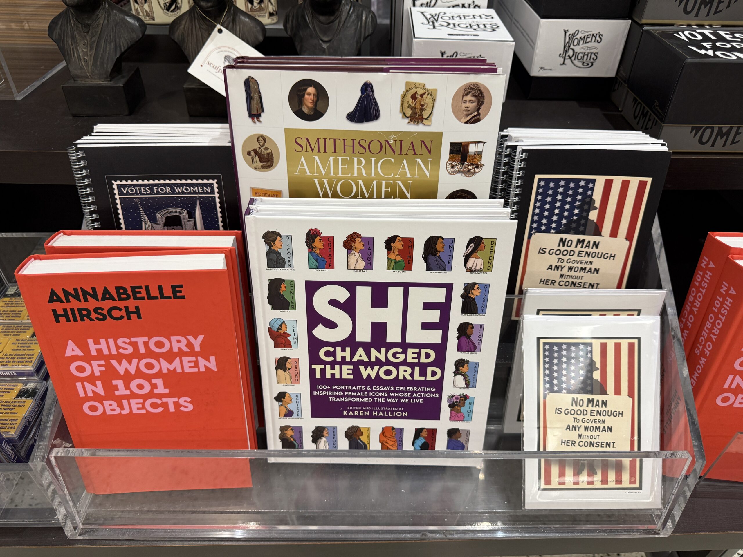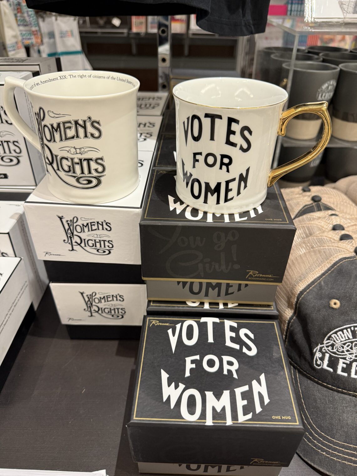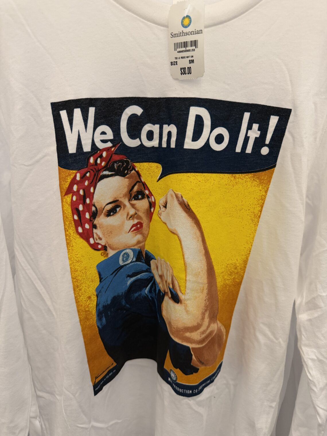 Some of the apparel in the gift shop celebrates 2SLGBTQQIA+, but most of it celebrates those who identify as “women”. Women are voting, doing science, building WWII weapons, being legends rather than ladies:
