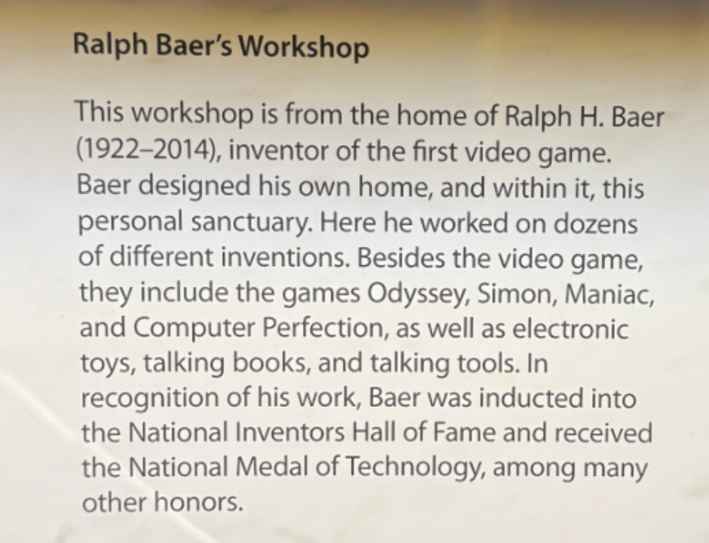 Likely unrelated to Trump and his war on wokeness, the museum falsely states that German-Jewish immigrant Ralph H. Baer invented “the first video game” circa 1966. Baer was perhaps the first to try to make a consumer-priced device that could attach to a TV, but Wokipedia correctedly credits earlier efforts on mainframe computers.