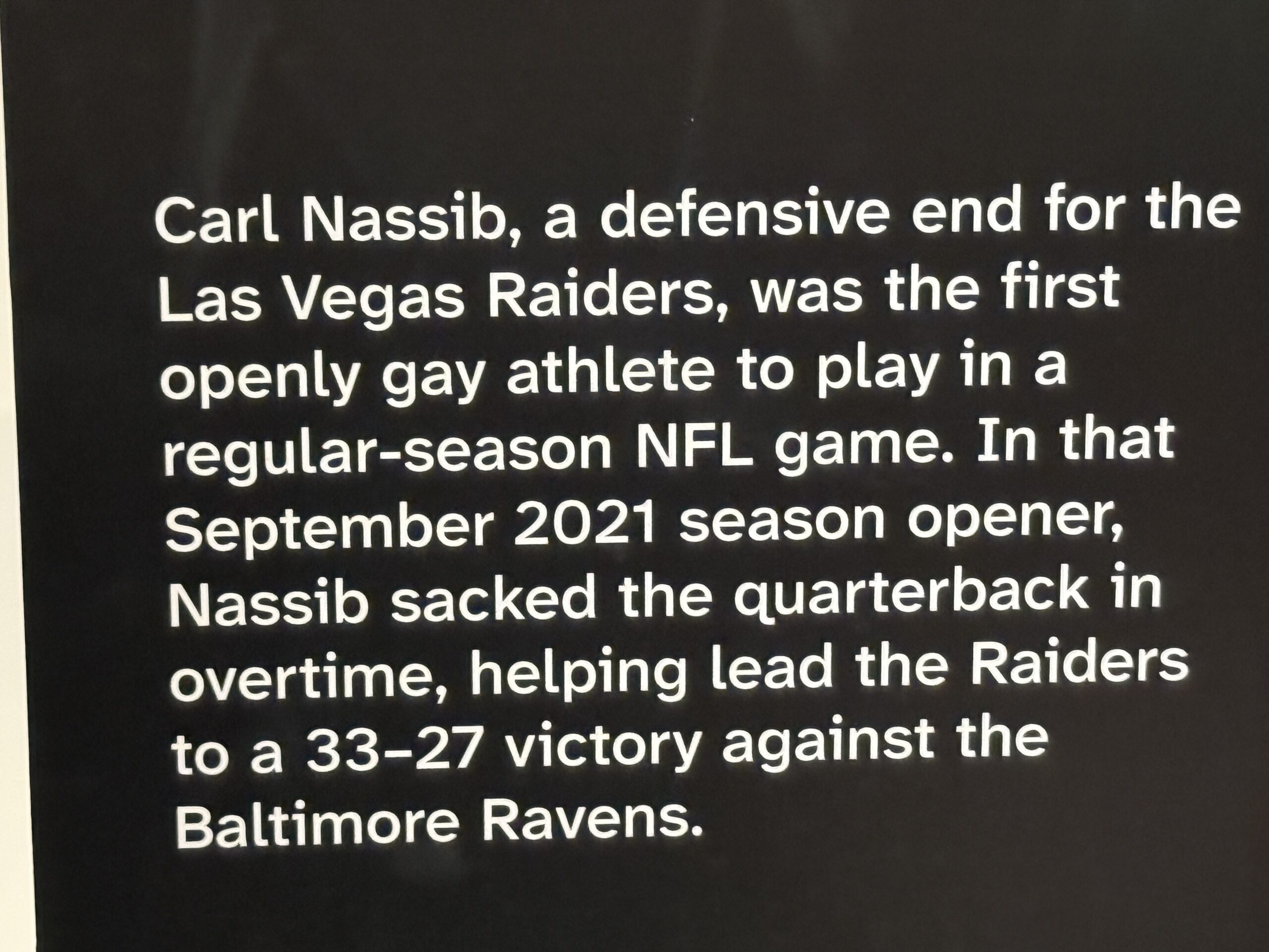 In the Entertainment Nation section, Carl Nassib was highlighted as the most notable football player in U.S. history (“openly gay”):