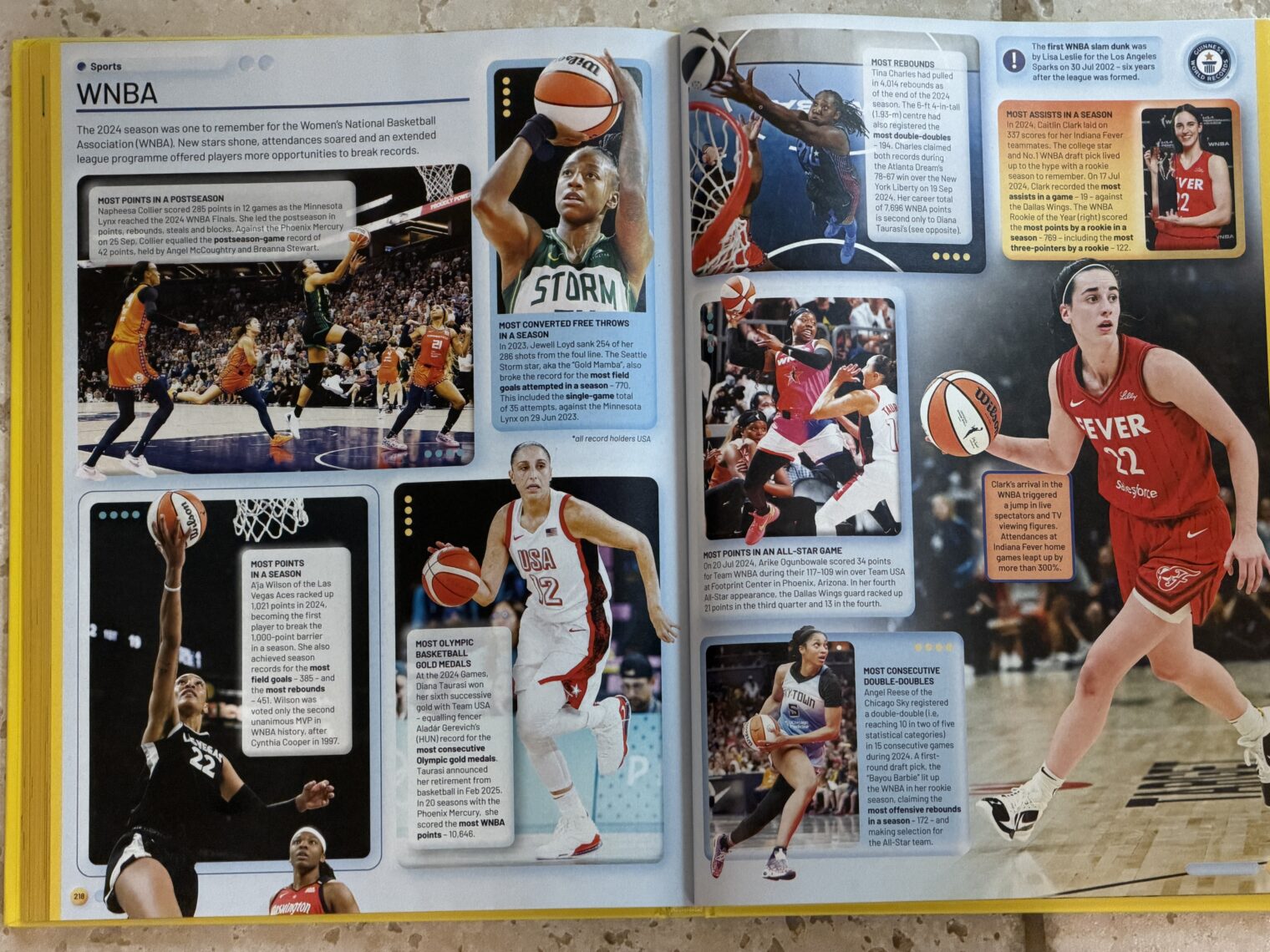 A two-page spread on the WNBA from Guinness World Records 2026:
