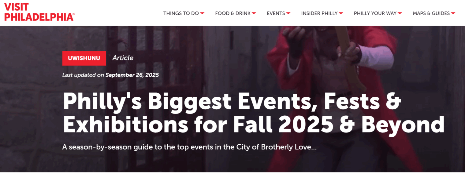 I have a business trip to Wilmington, Delaware. I thought I would check to see if there was any reason to tack on a day at the end to do something in “Filthadelphia”. Here’s the official tourism site for “the City of Brotherly Love”, reached after searching (on October 13) for “events in philadelphia november 2025”: