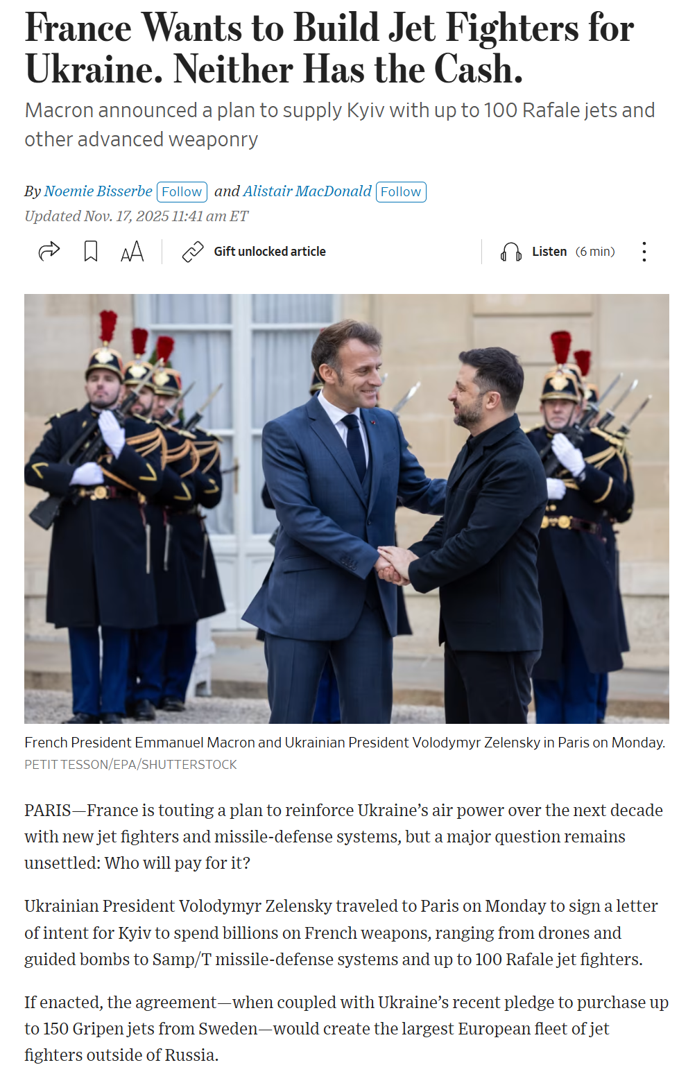 The relationship between cloud service companies and AI companies transcribed for military hardware… “France Wants to Build Jet Fighters for Ukraine. Neither Has the Cash.” (WSJ):