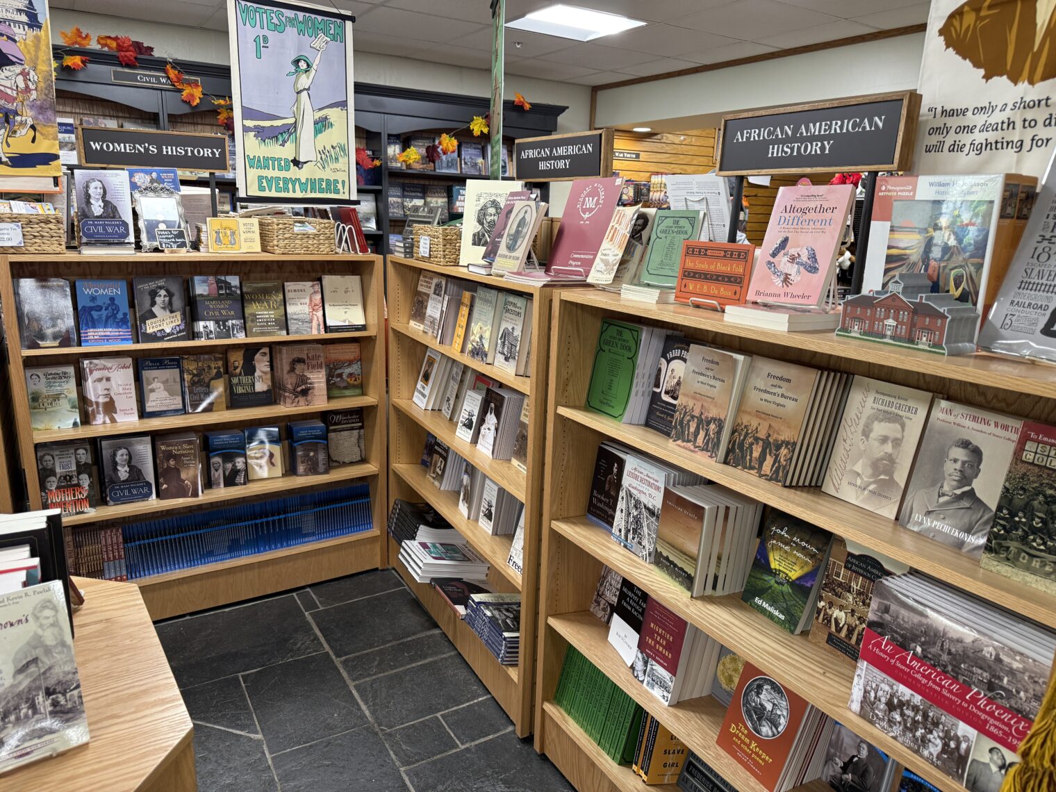 The “park store” in town is run by a private group and was therefore open. It was, apparently, women who did most of the fighting in the Civil War (there was no section for “men’s history” or “white history”):