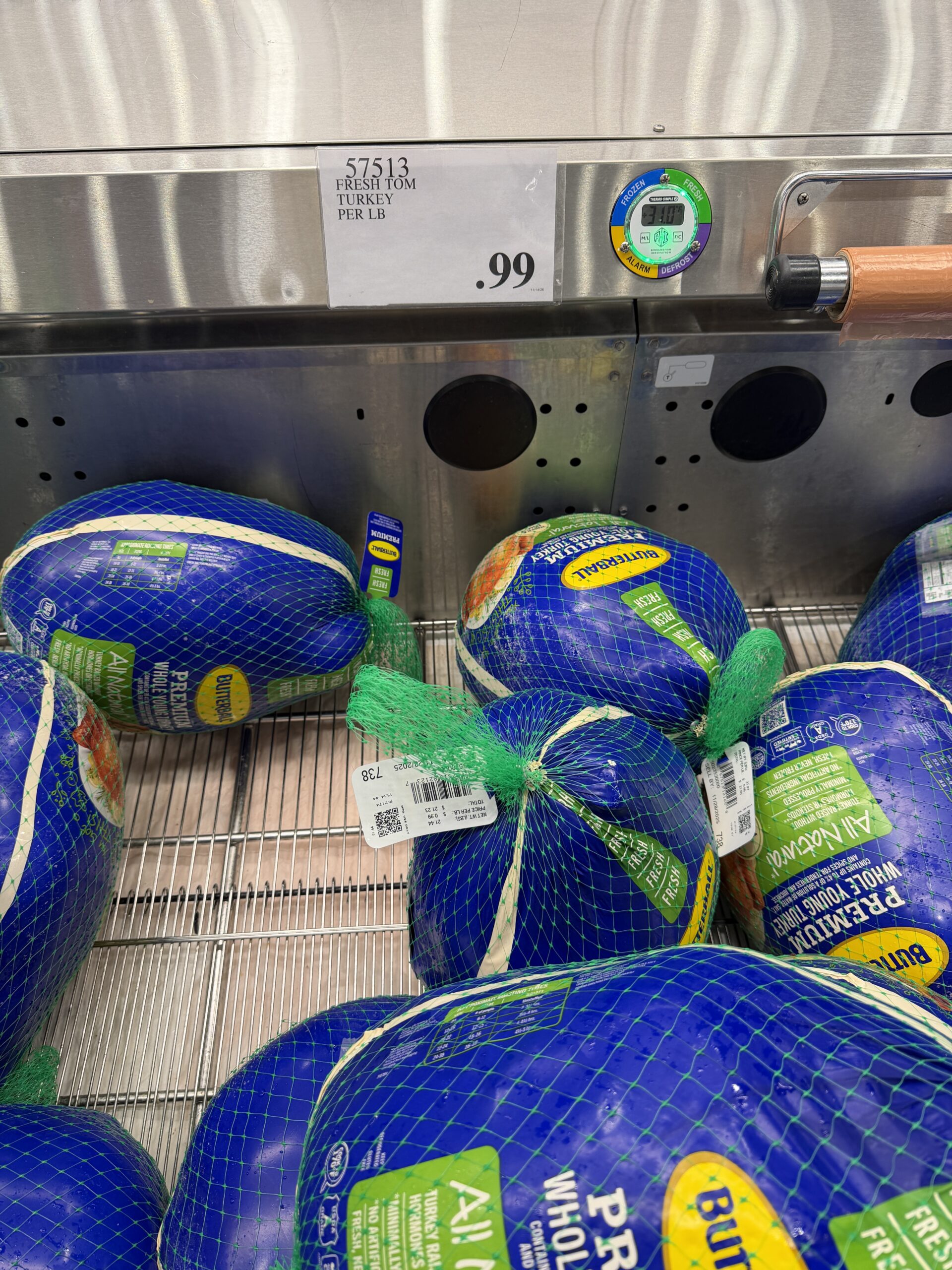 If you picked up a 99 cent/lb. turkey at Costco (below, from Stuart, Florida) or an 84 cent/lb. turkey at Walmart and managed to get it into the oven that therefore makes you one of the cognitive super-elite.