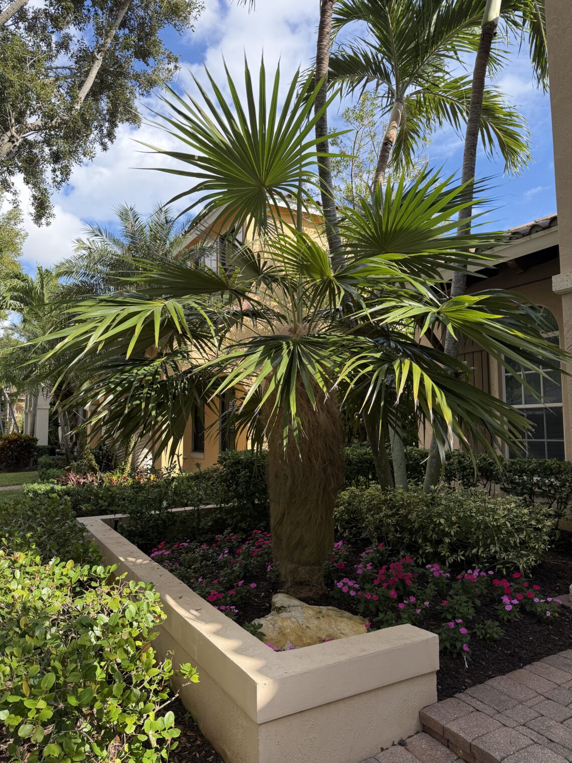What is the neighbor’s tree? Almost surely Coccothrinax crinita (Old Man Palm), an immigrant from Cuba:
