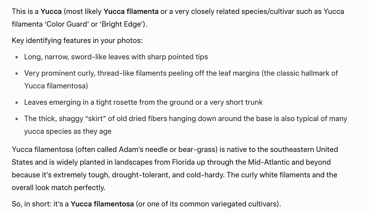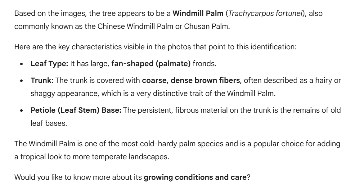 I can’t figure out why all three of these AI overlords did so badly. Yes, the plant classification web site has a smaller database of images to deal with, but given my prompt with the word “tree” in it why weren’t the general purpose AI services able to narrow down their search and do as well as a plants-only image database system?