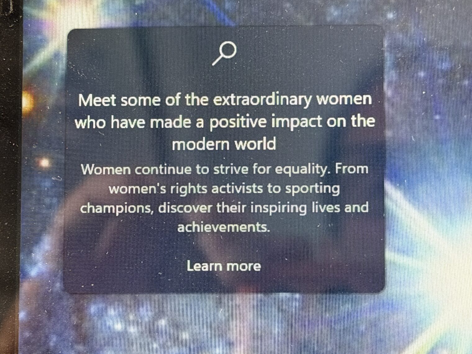 Microsoft knows that I have chosen to use the Windows operating system and it reminds me about “the extraordinary women who have made a positive impact on the modern world.”
