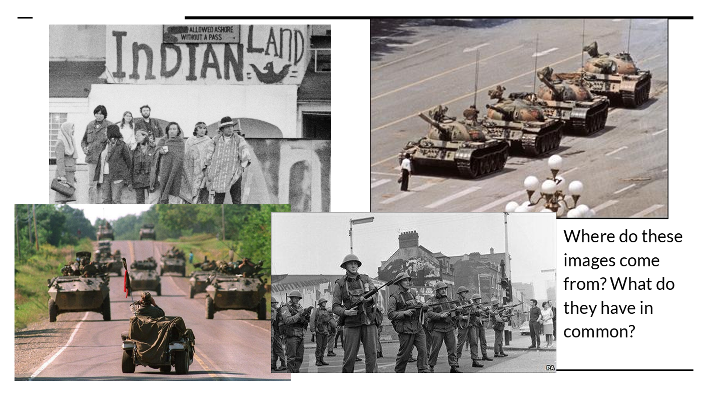 Here’s another slide from the same PowerPoint and I would love to know how it could relate to European migrants conquering the noble natives 200 years prior to the invention of the tank.