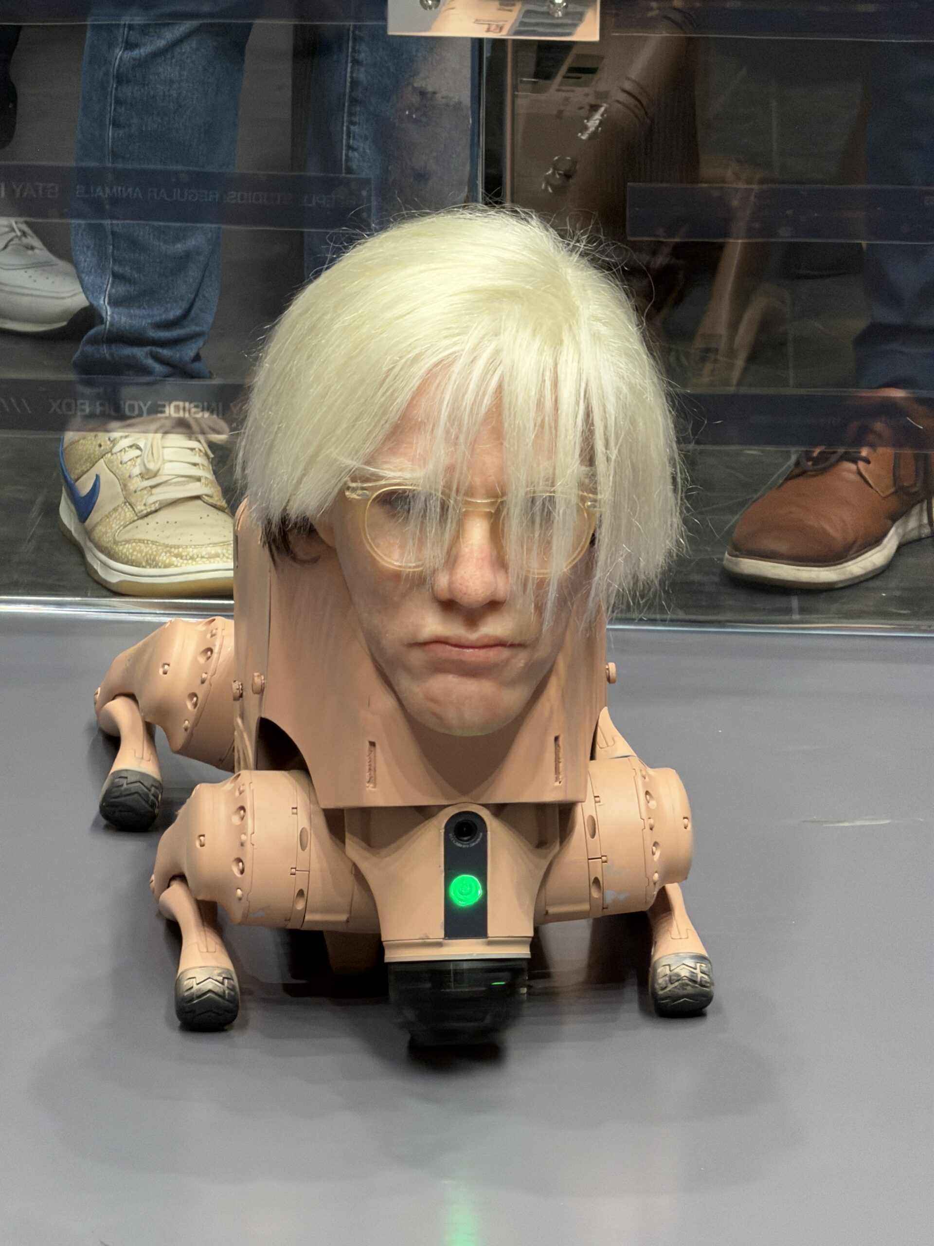 Speaking of rich, the most talked-about installation echoed the UBS theme of rich-meets-art. Busts of Jeff Bezos, Elon Musk, and Mark Zuckerberg on robot legs interacted with Andy Warhol, Picasso, and the creator of this work (Mike Winkelmann; a.k.a., “Beeple”). (Given Picasso’s fondness for teenage females, could he have survived today’s moral rectitude?)