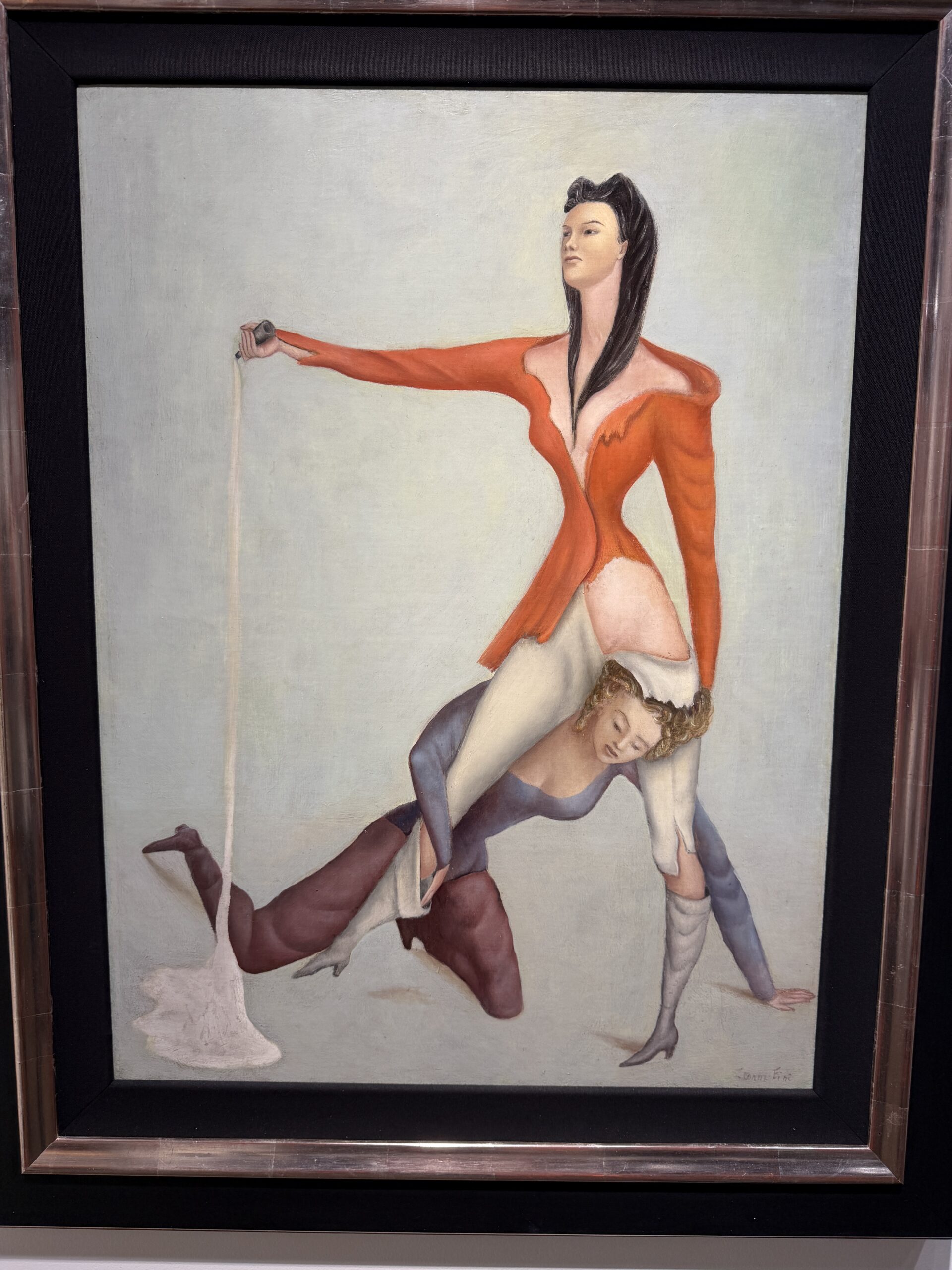 Only the Weinstein Gallery (they haven’t changed their name?) was crass enough to put prices on labels. Here’s a modest-sized $3.5 million Leonor Fini work from 1936 (imagine what it would cost to get an original oil painting by an artist that people have actually heard of!):