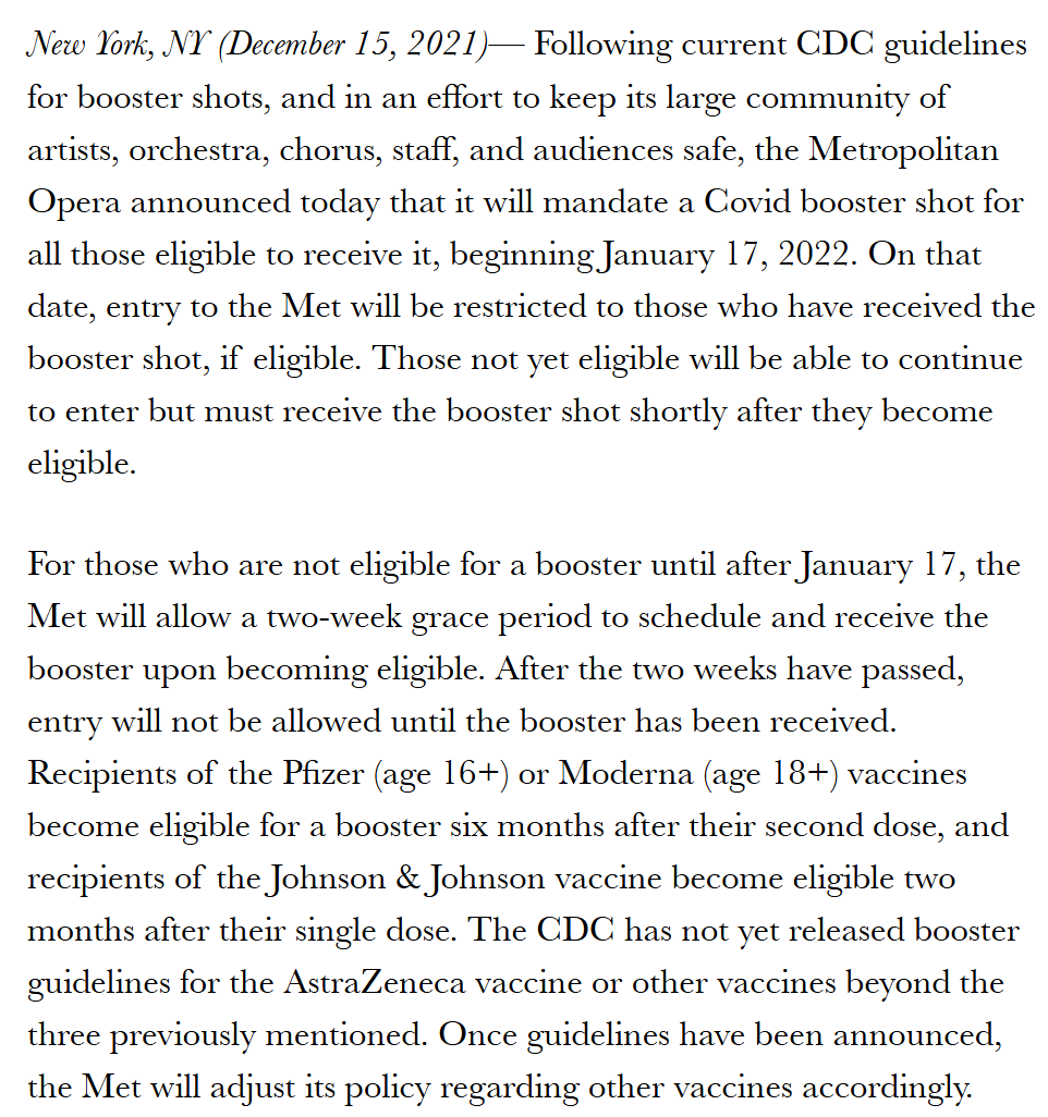 The Metropolitan Opera celebrated and followed the Science, meekly closing their doors and breaking their audience of the habit of buying tickets and attending live opera. They demanded vaccine papers when the Met was finally reopened in 2022: