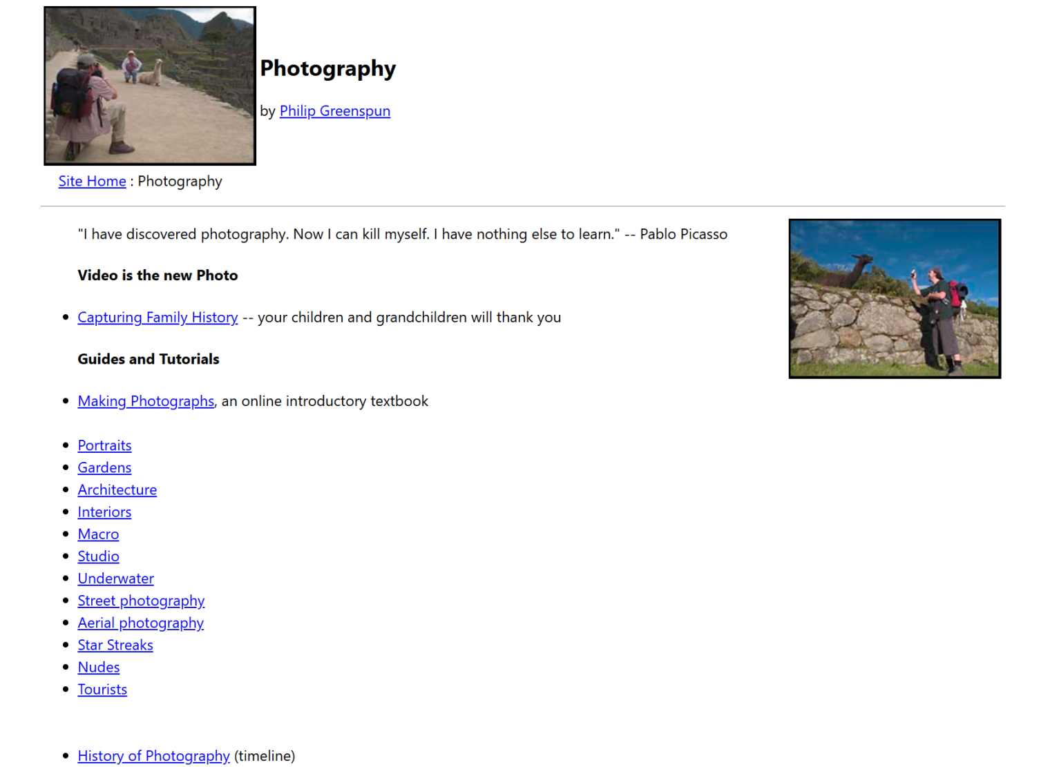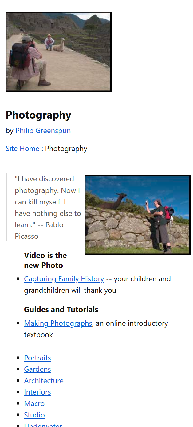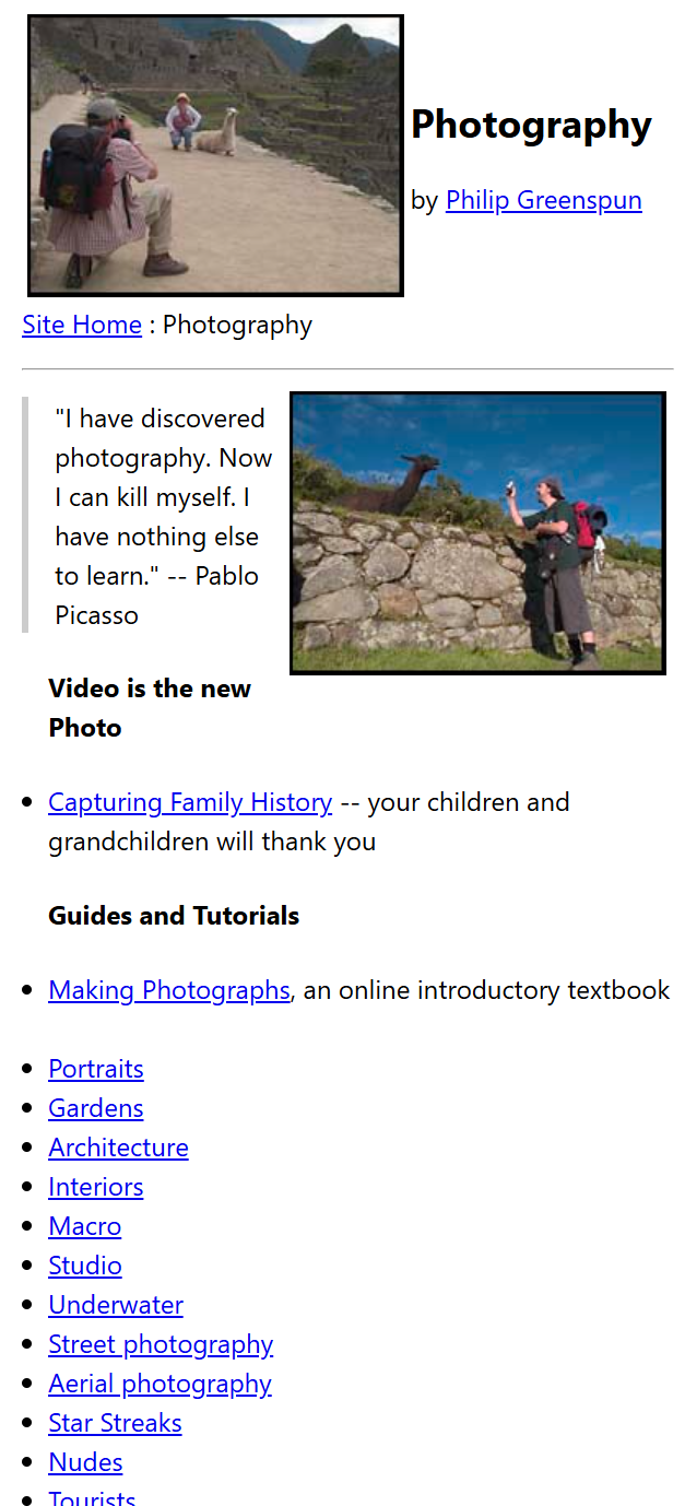 - “Philip Greenspun on Photography.htm”: Lists and blockquotes remain readable.