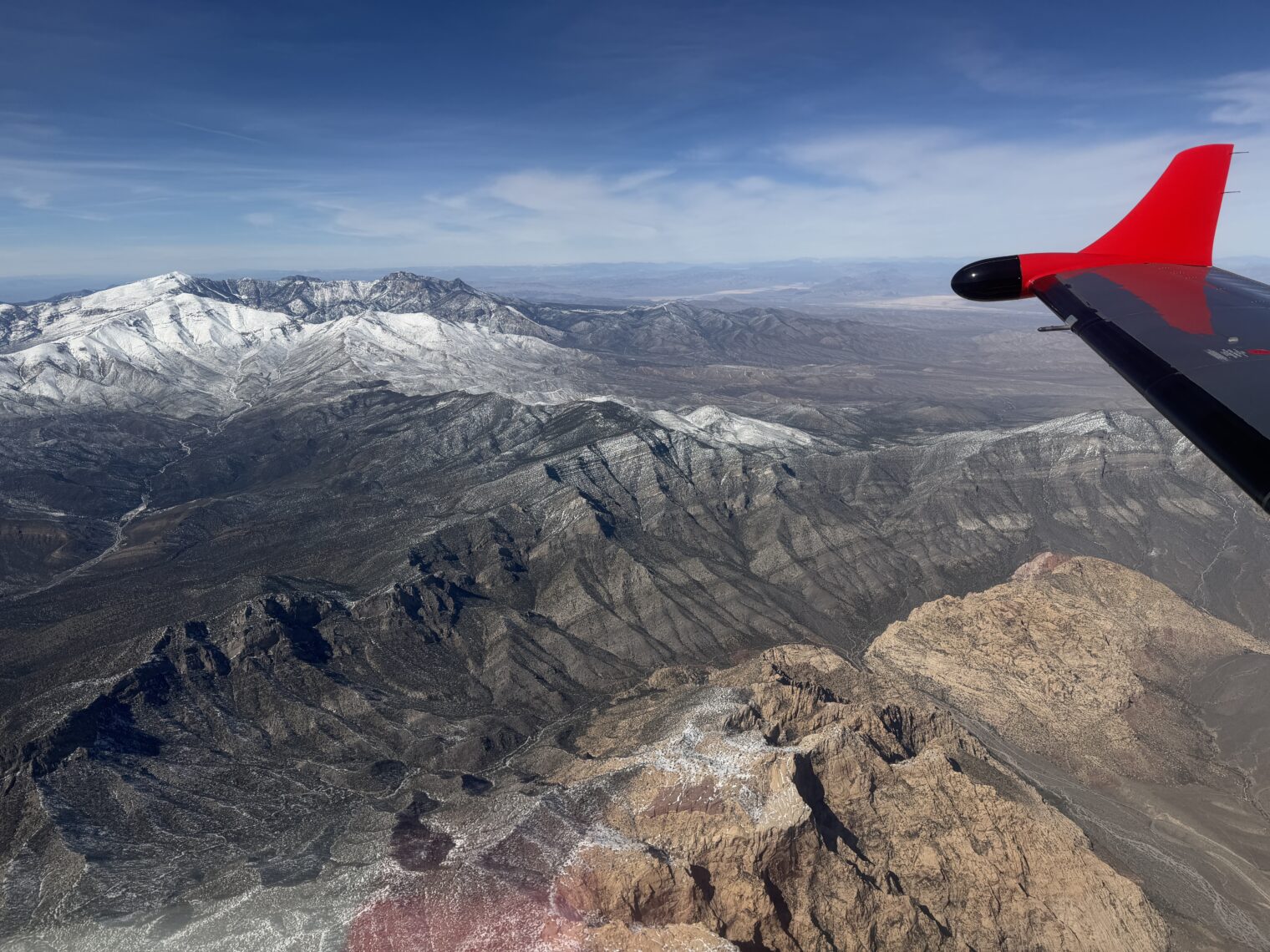 My friend wanted to go to Death Valley so we landed at 74P, the Calvada Meadows Airport. A couple of enroute snapshots and then the PC-12 on the ramp, such as it is: