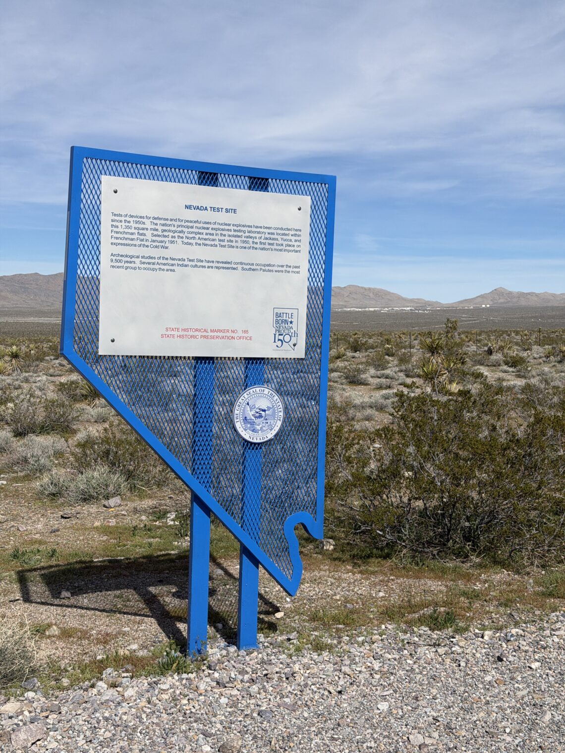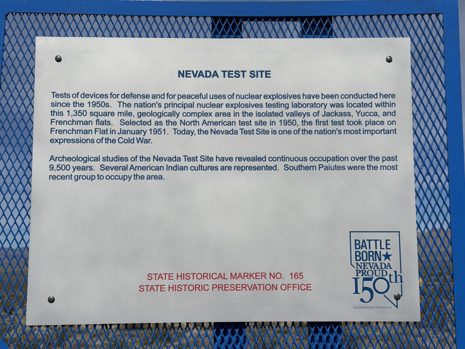 If you take the longer northern route to or from Las Vegas you’ll pass the Nevada Test Site for nuclear bombs (especially for “peaceful uses” of nuclear bombs, as demonstrated by the entirely peaceful Iranians, recently the victims of unprovoked aggression):