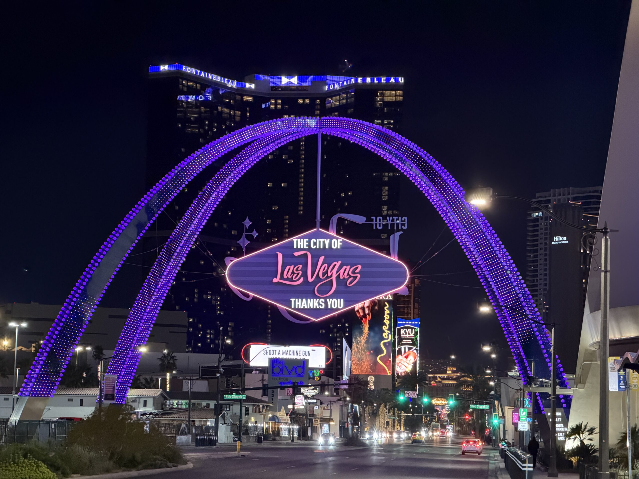 Last month I stayed with friends near the north end of the Strip, near the new Fontainebleau Las Vegas (a $3.7 billion Florida export with a tortured history). The view from their terrace (note the Sphere towards the right):