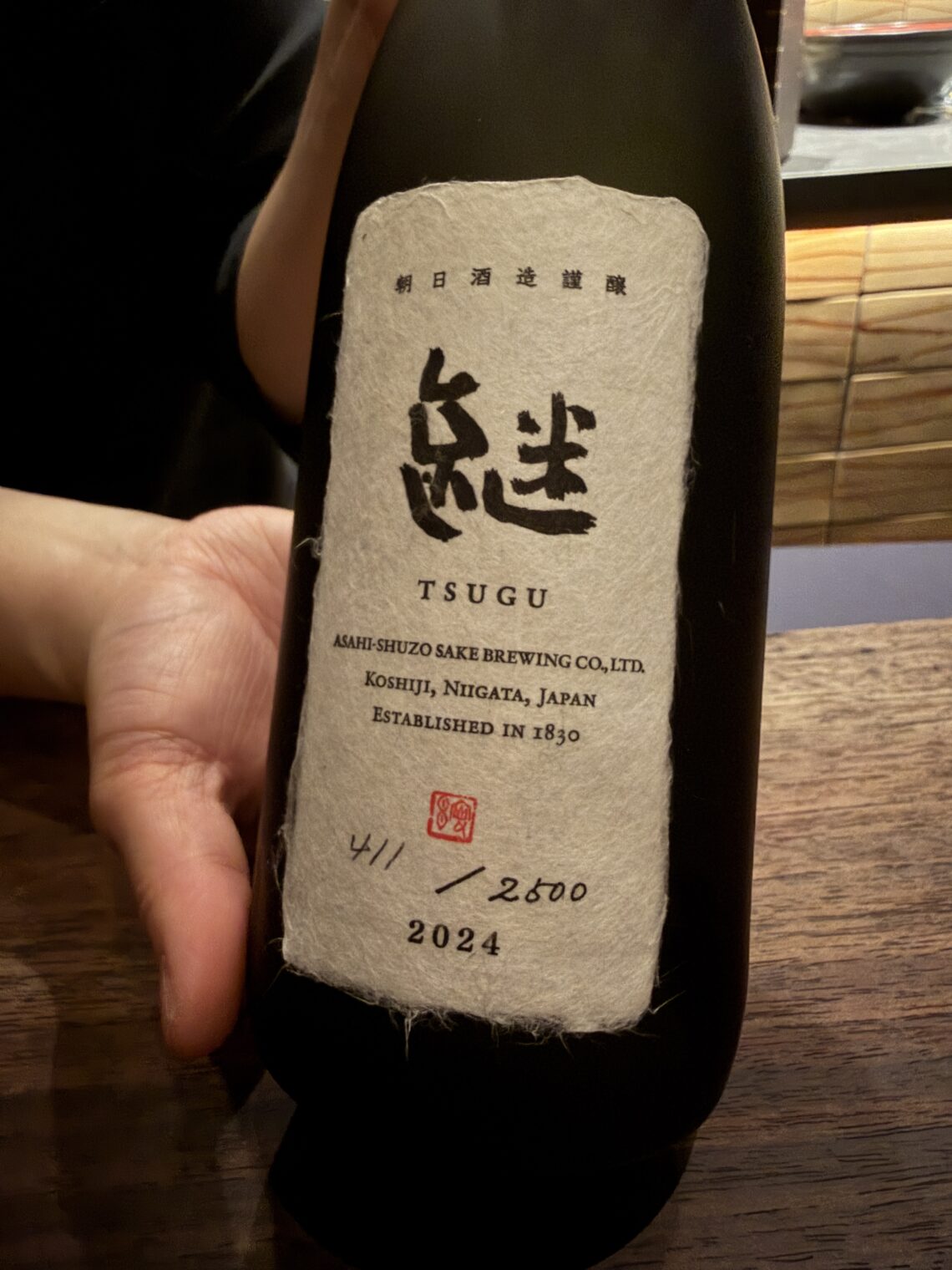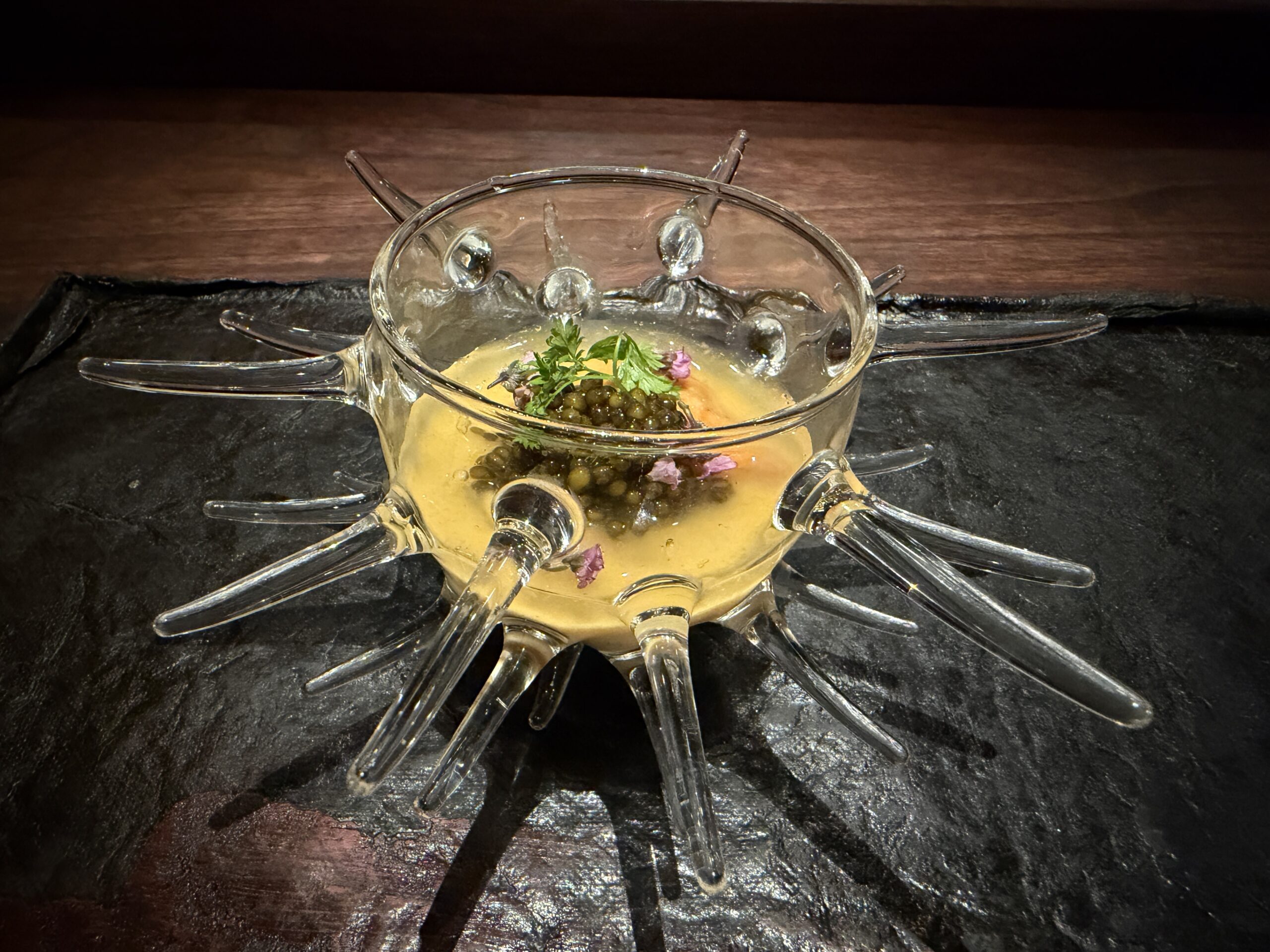 What did it cost? I’m afraid to ask, but fortunately my host paid. I don’t think that it was cheap, however, because the sake pairing, which I declined because I’m not sophisticated like James Bond and can’t appreciate sake, included a bottle that retails for $550: