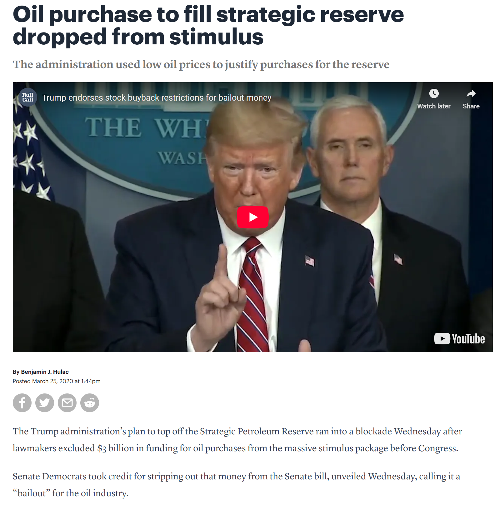 Oil collapsed to $20-25/barrel during coronapanic and Donald Trump tried to seize the opportunity to buy enough to fill the Strategic Petroleum Reserve. Exactly six years ago, from rollcall: