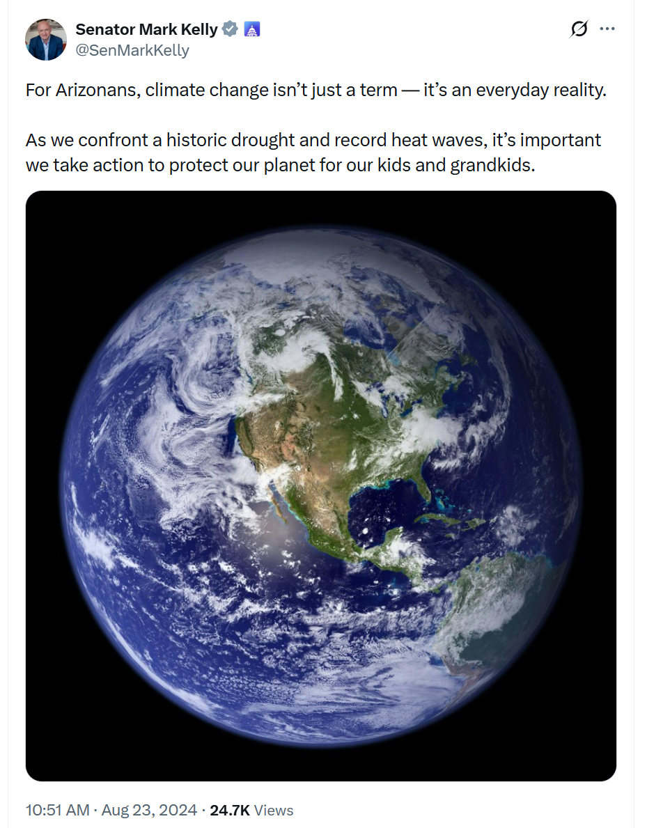 Loosely related, the examples of Why are climate change alarmists also coronavirus alarmists? continue to mount. Democrat Sen. Mark Kelly, pre-war, advocating “action to protect our planet”: