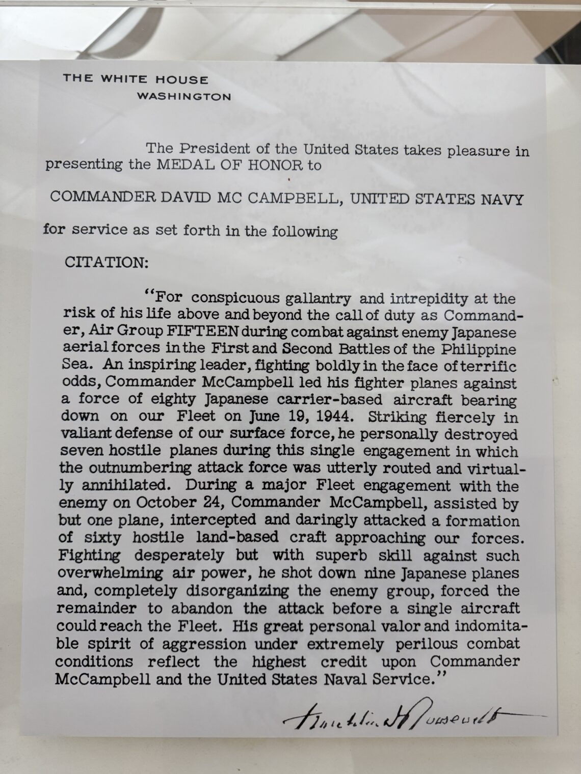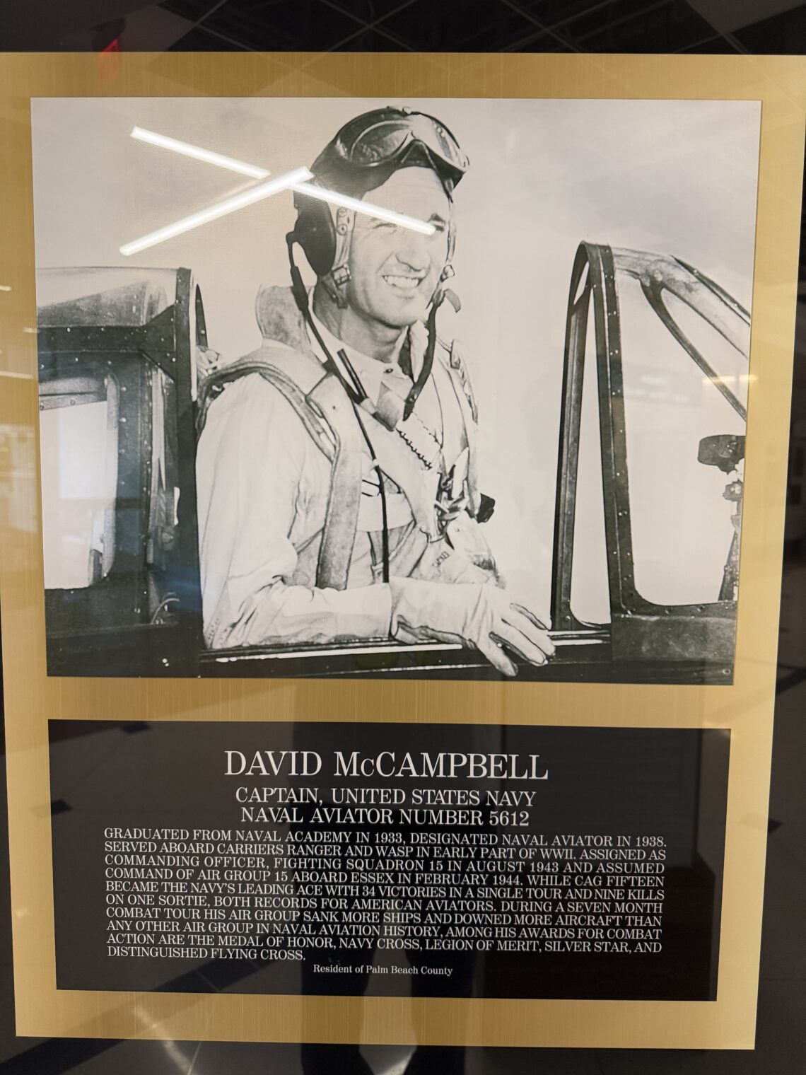 Permanent airport exhibit on David McCampbell, “the United States Navy’s all-time leading flying ace”, who spent his youth and retirement in Palm Beach County: