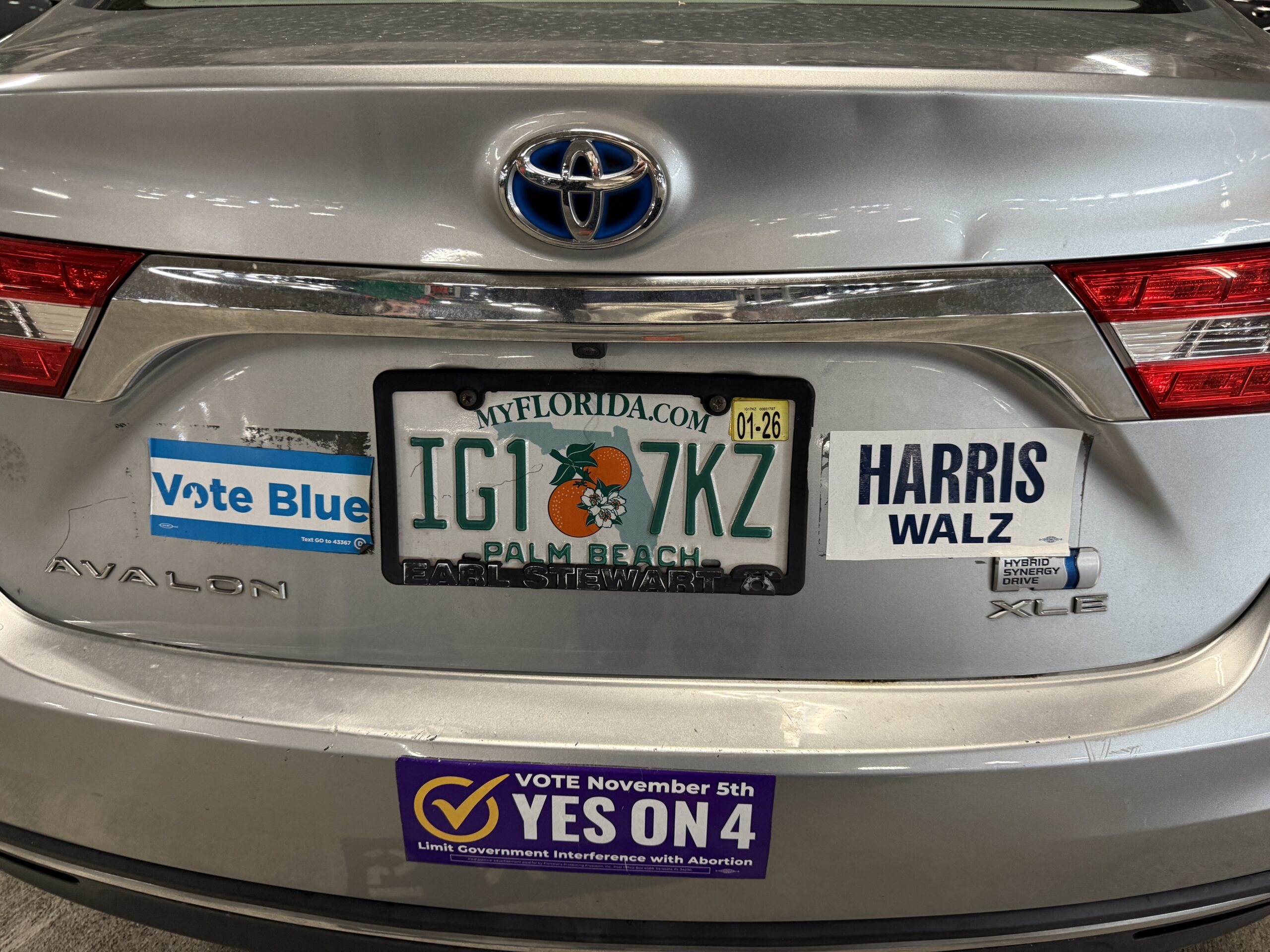 A car in the airport garage back in June 2025 (rare to have any political bumper stickers in this part of Florida, but it is also possible to go big):