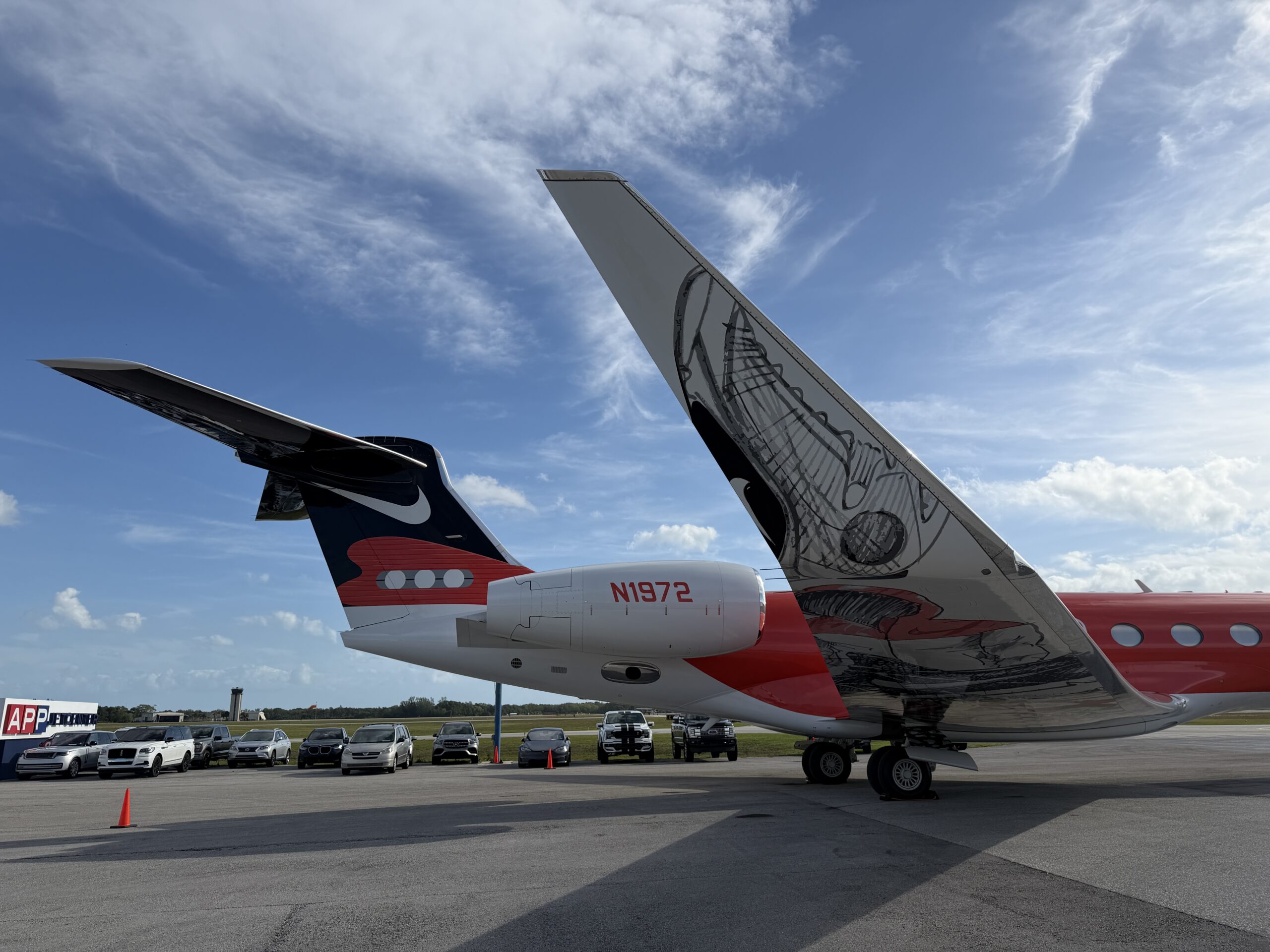 Not the best plane for flying the above procedure, but the under-wing graffiti is interesting. “N1972” makes sense for registration of this G650ER because that’s the year that Nike-brand shoes were introduced. I will give Nike credit for registering this to their own corporation instead of trying to hide it in a trust or LLC. In Stuart, Florida as I was preflighting the venerable Cirrus SR20-G2.