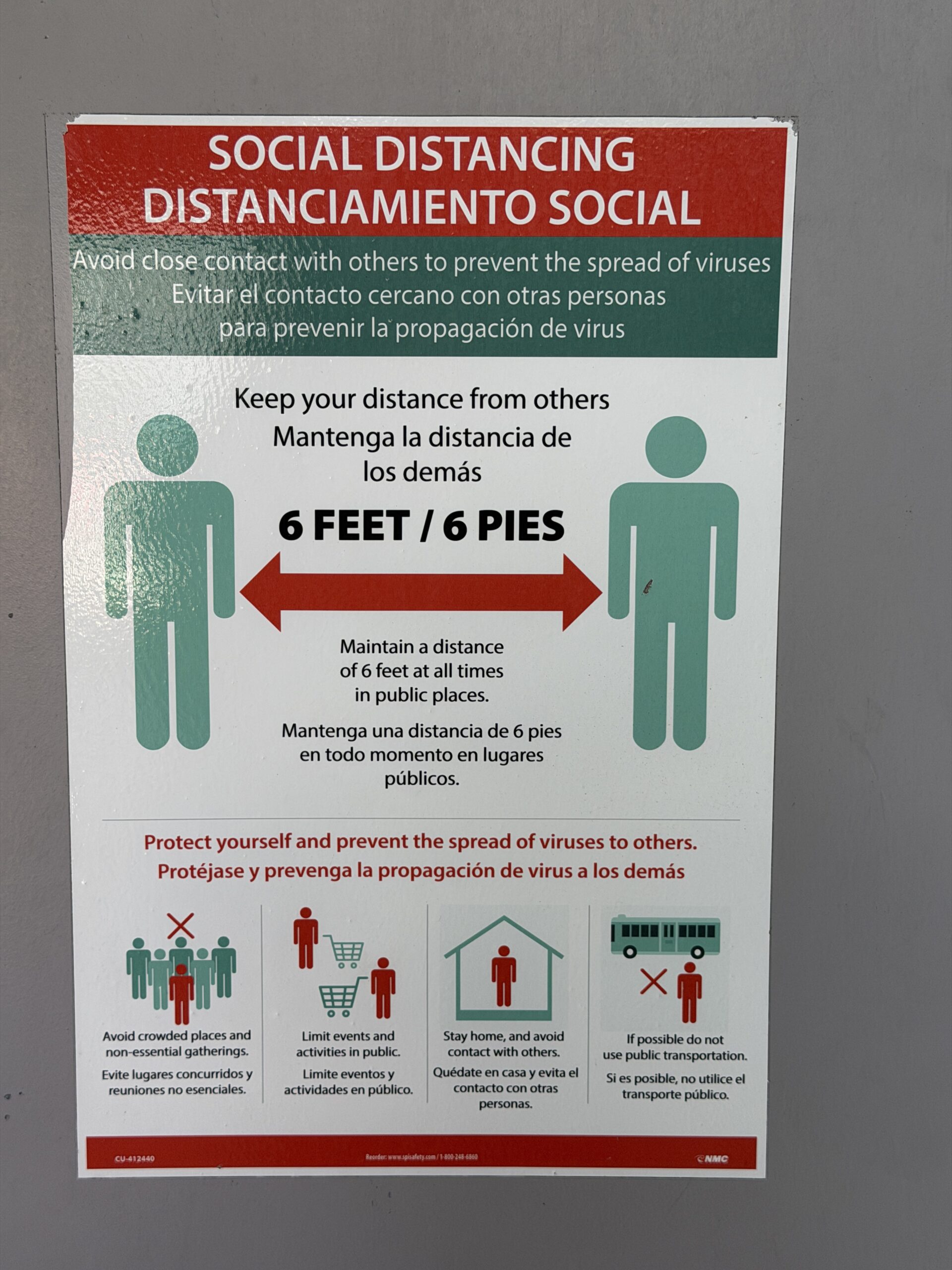 The high school at the airport still has a Coronapanic sign on a side door (see When will we feel safe enough to remove our coronapanic signs? (2024; the answer is “not before 2027”?)):