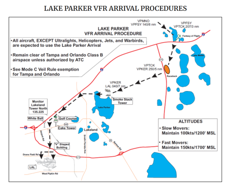 What if you’re irrational and choose to fly in? The NOTAM explains what to do. All of the waypoints seem to be in the Garmin 430 database (or maybe I entered them in during a previous trip?). I arrived mid-morning on the first day (Tuesday) and, therefore, the ATIS said to start at Fantasy of Flight rather than at Lake Parker. It’s somewhat unnerving to be 1 mile behind the plane in front and 1 mile in front of the plane in back, but it sort of works if everyone is precise about 100 knots and 1200′. It might have been smarter to file IFR and land on the big runway.