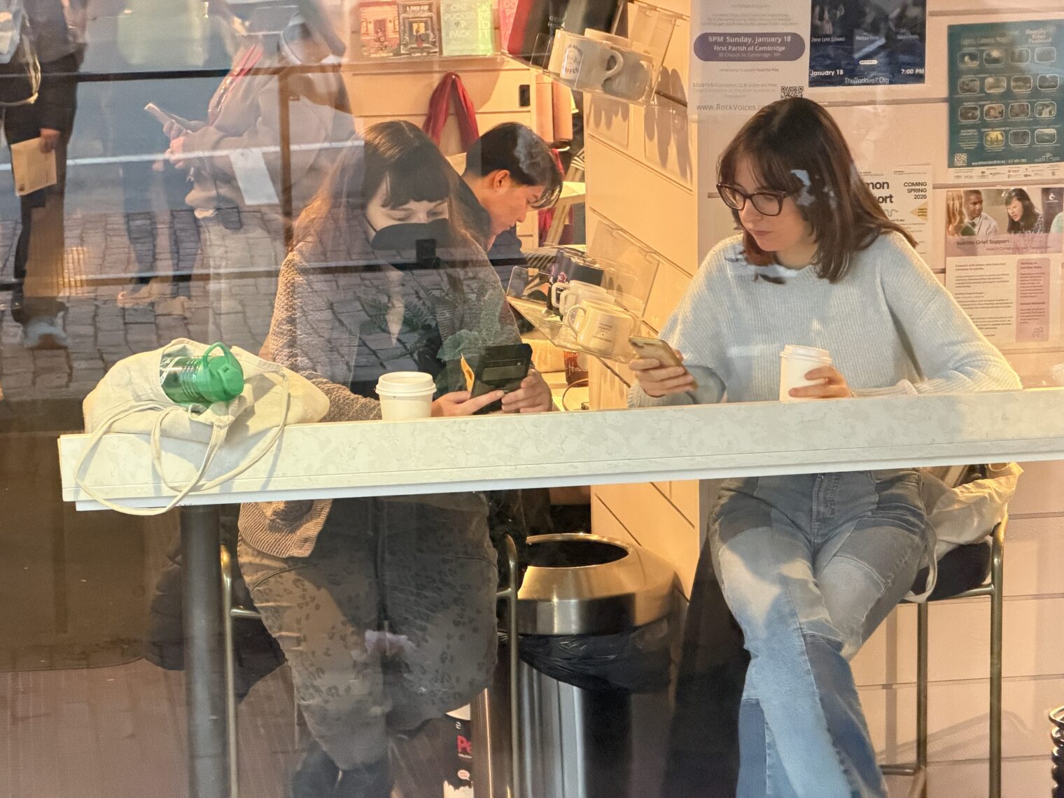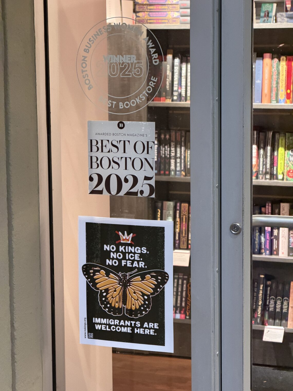 “No Kings; No ICE; No Fear; Immigrants are welcome here”. Looking through the window I observed at least five people in the store wearing masks. The person in the photo was my favorite. He/she/ze/they would remove the mask, sip his/her/zir/their coffee, and then put it back on repeatedly.
