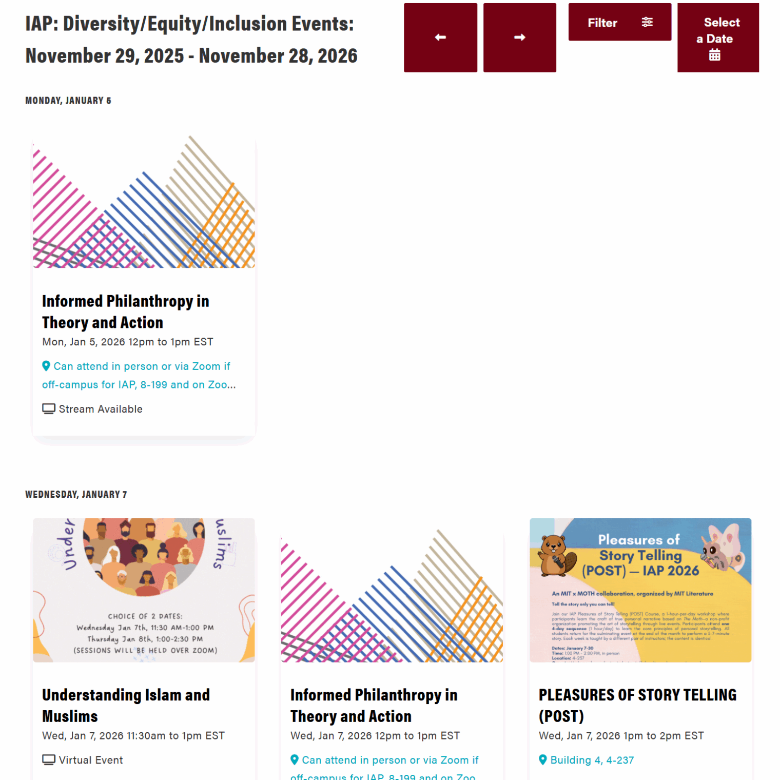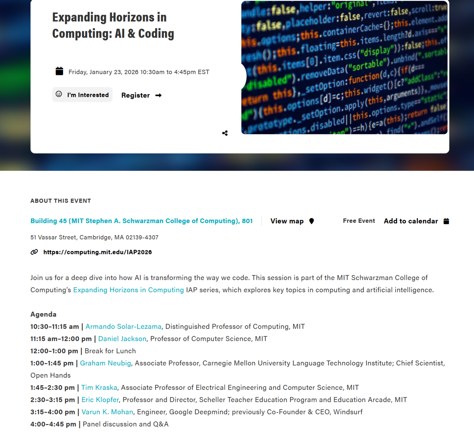 I wondered if it was continued fallout from coronapanic, but the course offerings for MIT’s January 2026 term (“IAP” for Independent Activities Period, in which both for-credit and more casual courses are traditionally offered) seemed rather thin when I first looked. The deadline for submitting an event was December 1, 2025 and I checked the schedule on November 29. There were still some awesome classes, e.g.,