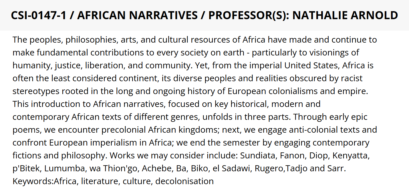 What else can one learn at Hampshire? That our society rests on “fundamental contributions” from Africans: