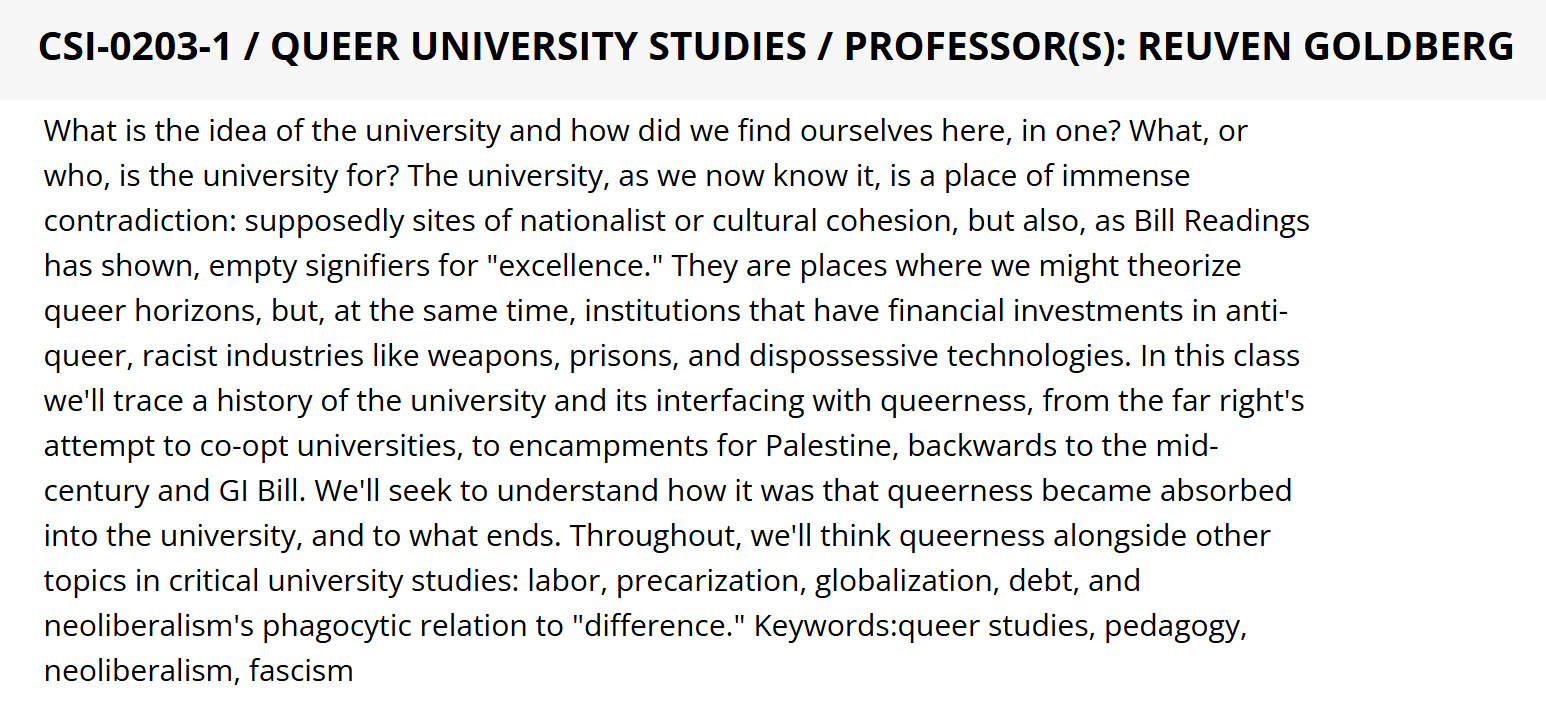 That the university is a place for “theorizing queer horizons”: